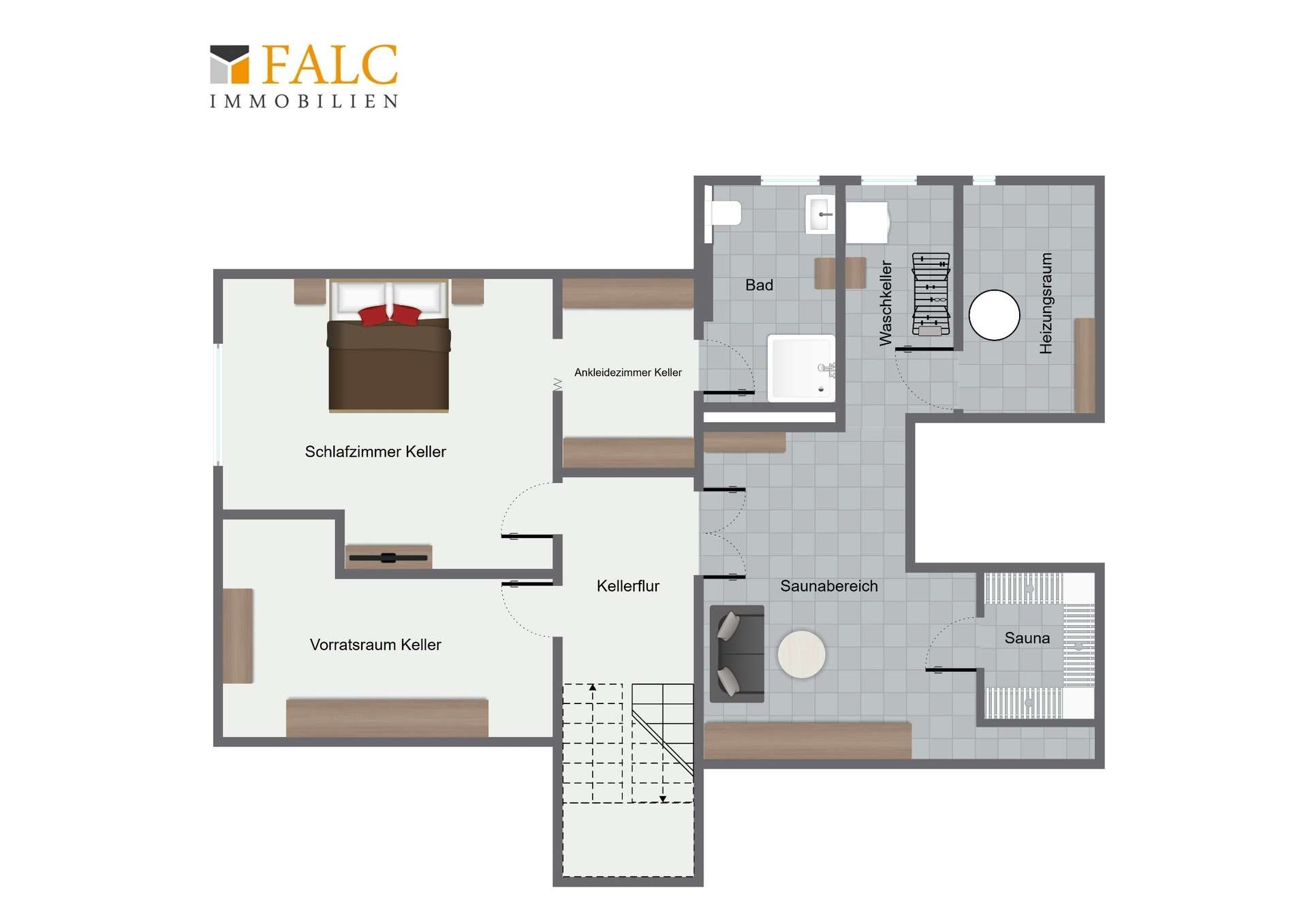 Untergeschoss Der Keller besticht durch seine hochwertige Ausstattung und vielfältigen Nutzungsmöglichkeiten. Neben einem Vorrats- und Waschraum sowie dem Heizungsraum (mit neuer Gasheizung) finden Sie hier einen Saunabereich für private Wellnessmomente. Ein weiteres Highlight ist ein separates Schlafzimmer mit Ankleidezimmer und eigenem, modernen Bad – ideal als Gästebereich, Fitnessraum oder privater Rückzugsort.