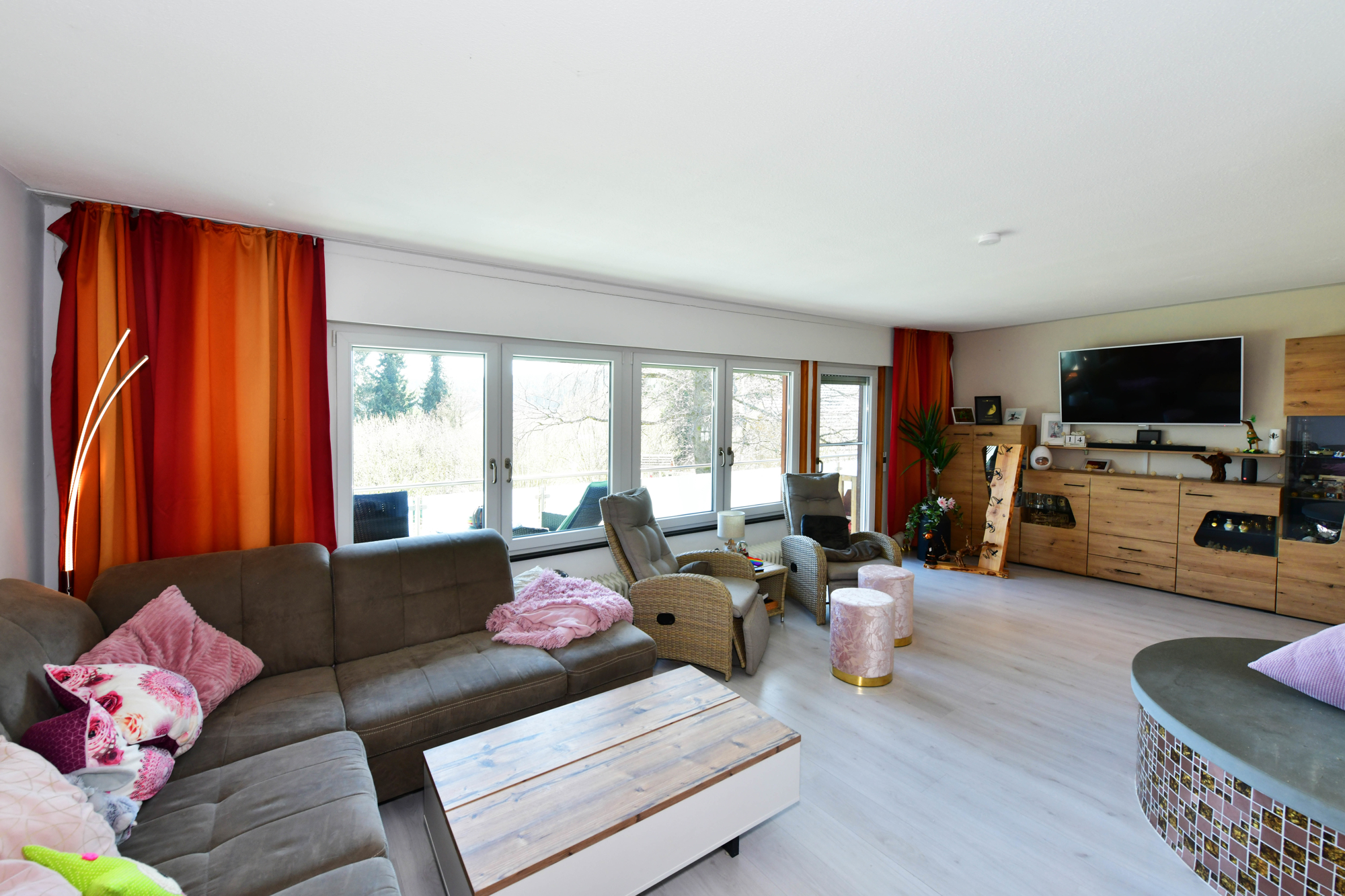 - Neue Fenster und Balkontür im Dachgeschoss: 3-fach verglast (2022), übrige Fenster 2-fach verglast