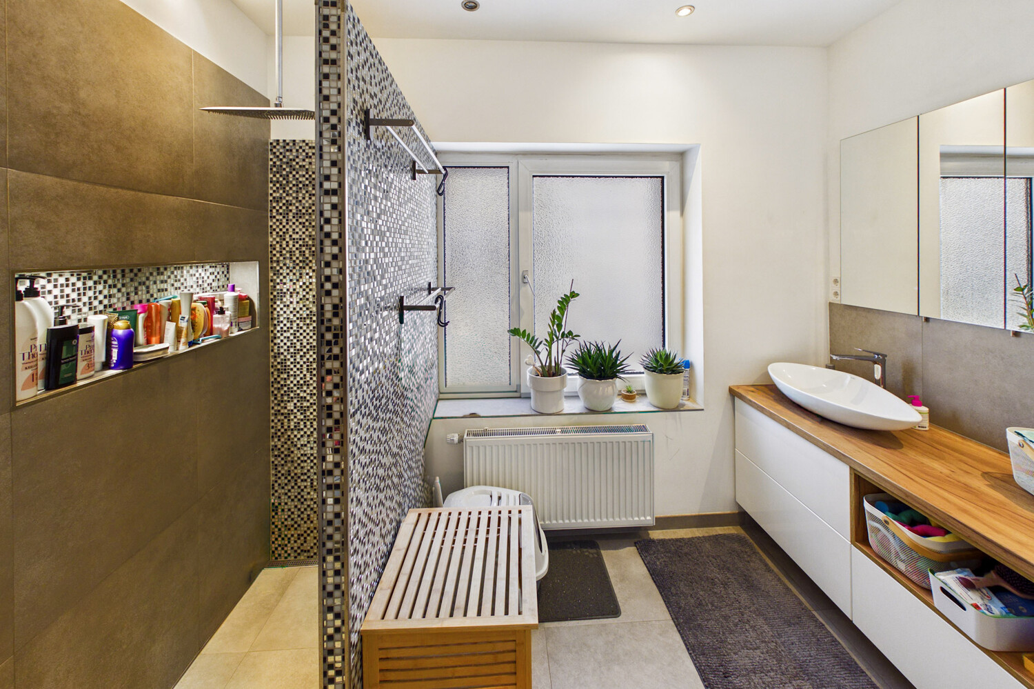 Auch an den Fenstern wurde umfassend investiert: 2023 wurden im Erd- und Obergeschoss überwiegend dreifach verglaste Kunststofffenster eingebaut, zeitgleich erfolgte die Erneuerung der Kellerfenster. Außenjalousien an beiden Wohneinheiten sorgen für optimalen Sicht- und Sonnenschutz und tragen zusätzlich zu einem sicheren und komfortablen Wohngefühl bei.