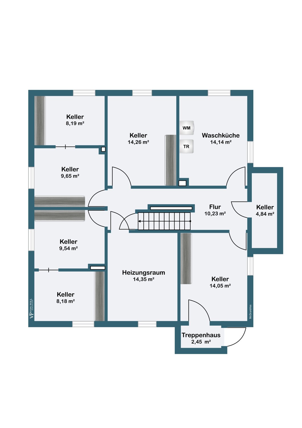 Der Vollkeller bietet zahlreiche, vielseitig nutzbare Räume – ideal als Hobby-, Lager- oder Werkbereich oder für Hauswirtschaft und Vorrat. Diese großzügige Nutzfläche ergänzt den Wohnraum perfekt und schafft zusätzliche Flexibilität für individuelle Nutzungsideen.