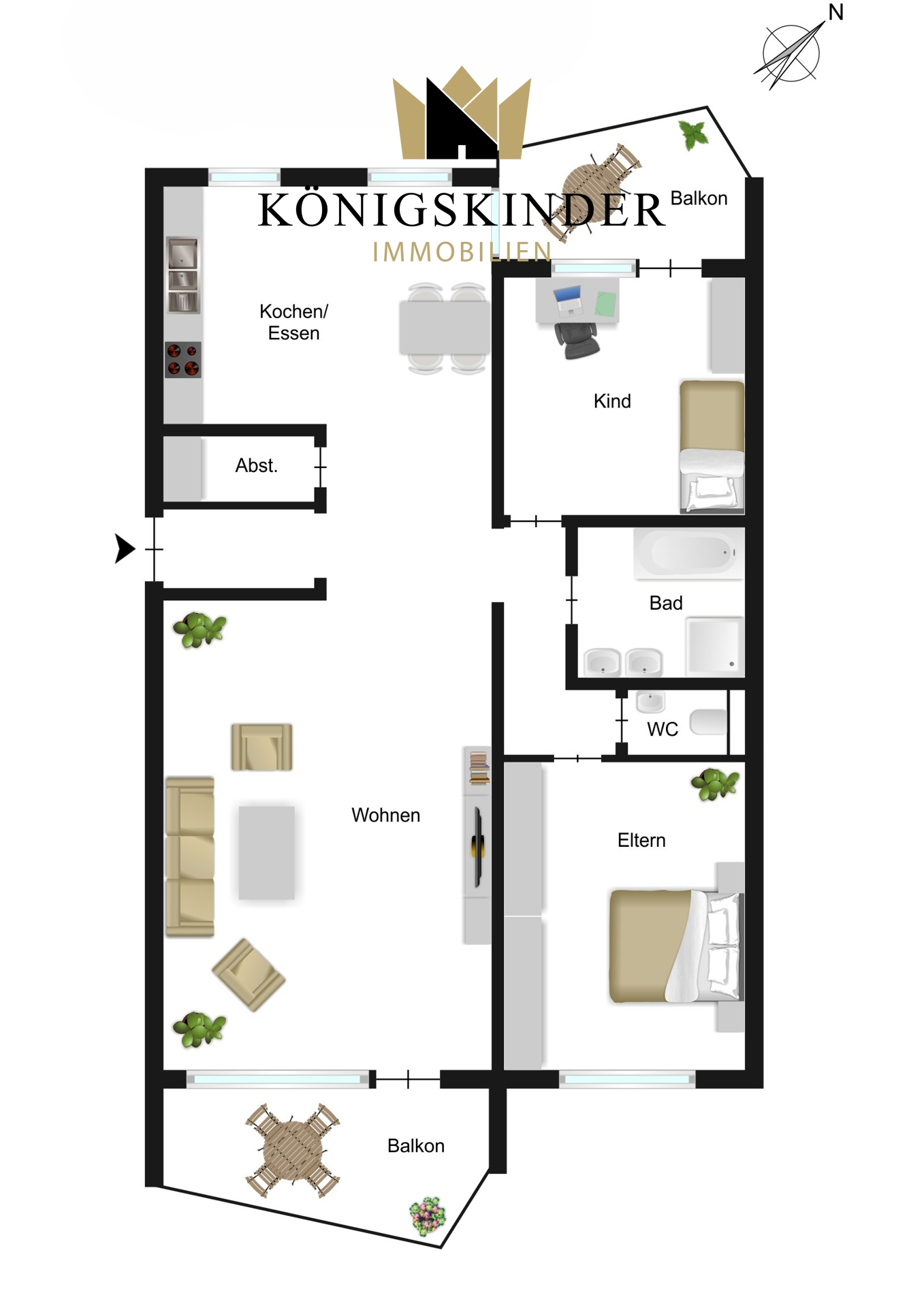 - Wohnzimmer mit bodentiefem Panoramafenster und elektrischem Rollladen - Kinderzimmer mit bodentiefen Fenstern und eigenem Balkonzugang - Einbauküche, offen gestaltet mit Großgeräten - Großzügiger Essbereich mit Balkonzugang - Badezimmer mit Duschwanne und Waschmaschinenanschluss - Helles Schlafzimmer - Zwei Balkone mit elektrischen Markisen - Tiefgarage mit Fernbedienung für das Tor - Insektenschutz