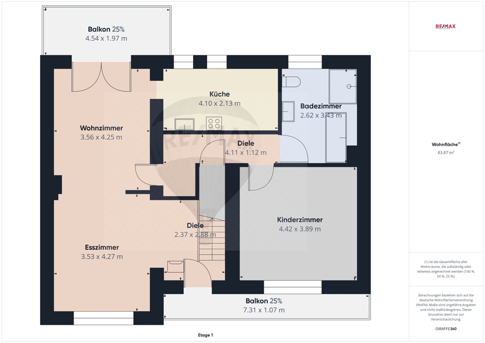 Provision: Die Maklerprovision in Höhe 3,57% inkl. 19% MwSt. vom Kaufpreis ist mit Abschluss des Kaufvertrages verdient und fällig. RE/MAX erhält einen unmittelbaren Zahlungsanspruch gegenüber dem Käufer (Vertrag zugunsten Dritter, § 328 BGB). Bei Kaufpreisen unter 100.000,- Euro werden 3.570,- Euro berechnet.