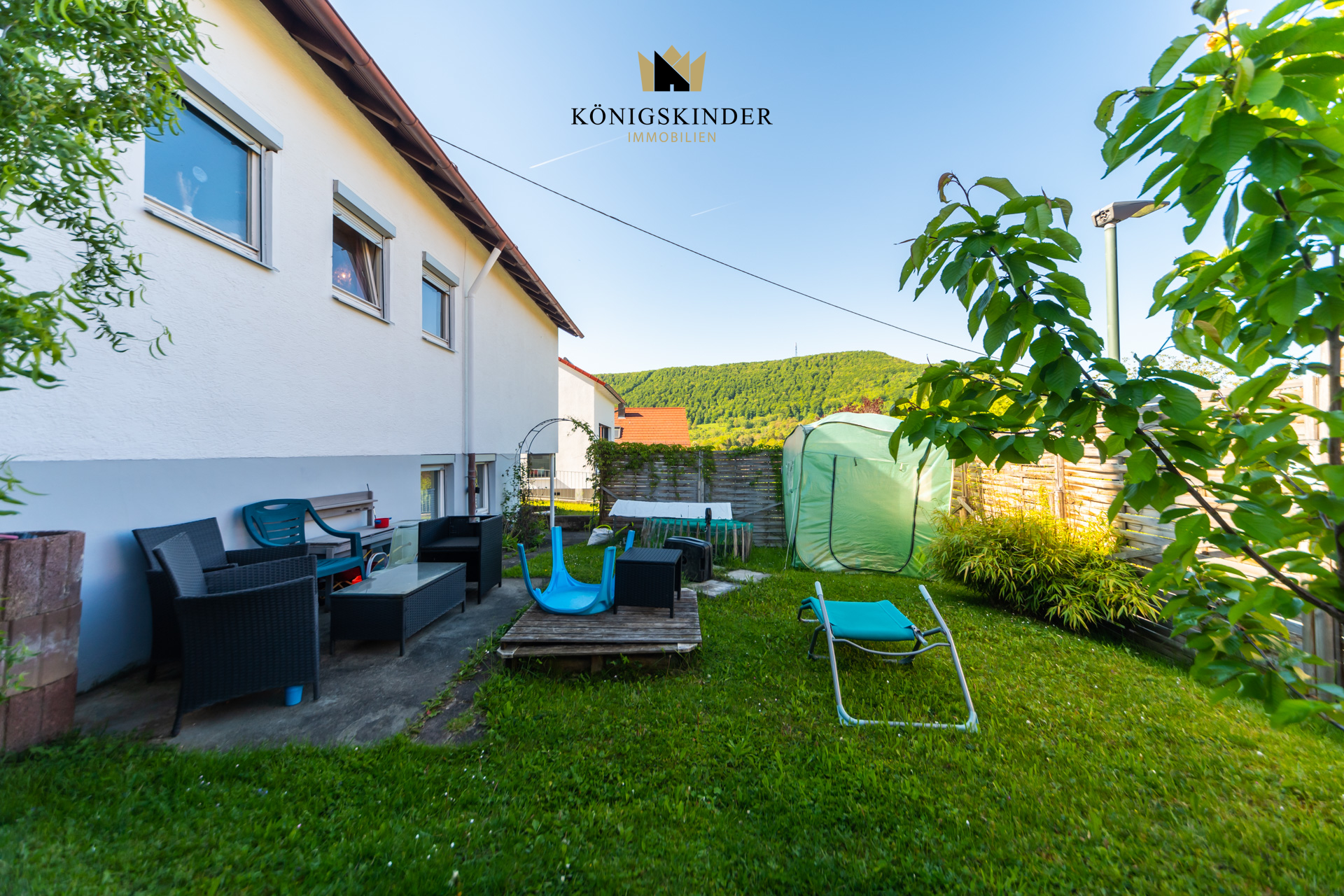 Jede Wohnung verfügt über einen eigenen Außenbereich: entweder mit Balkon oder mit Terrasse und Zugang zum Garten. So kann jede Partei ihren privaten Freiraum genießen – mit direktem Blick in die Natur und auf das beeindruckende Panorama des Albtraufs. Die ruhige Umgebung und die grüne Lage machen diese Immobilie zu einem echten Rückzugsort mit hoher Lebensqualität.