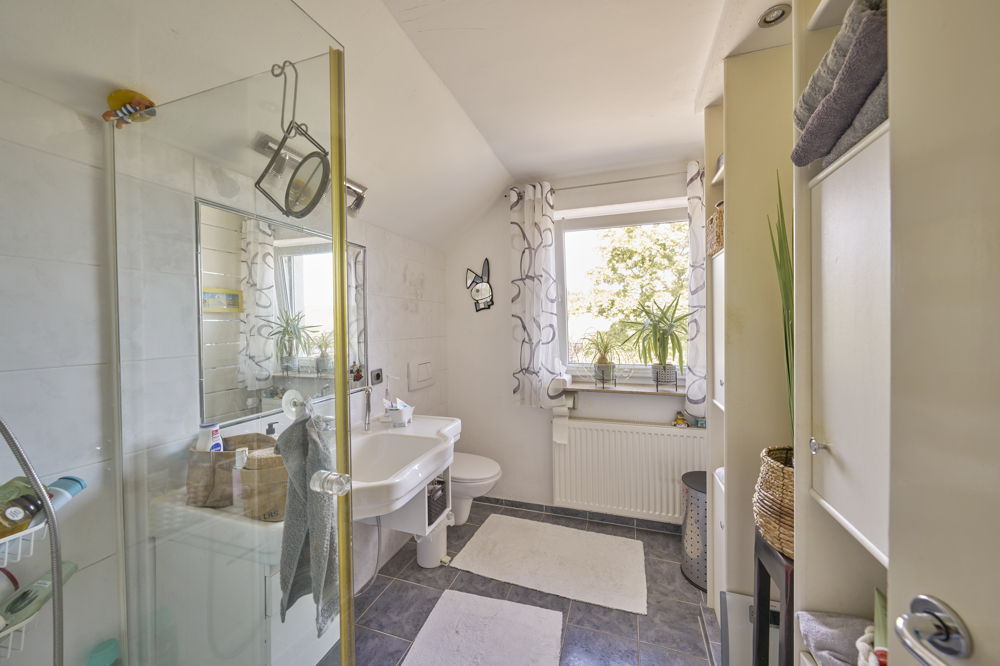 Ausgestattet ist das Objekt mit einer großen Wohnung im Erdgeschoss, einer gemütlichen Dachgeschosswohnung, einem kleinen Appartement in der ehemaligen Garage, sowie ein komplett ausgebautes Kellergeschoss mit einem Appartement und einem Gästebereich. Insgesamt viel Wohnfläche für den größeren Platzbedarf.