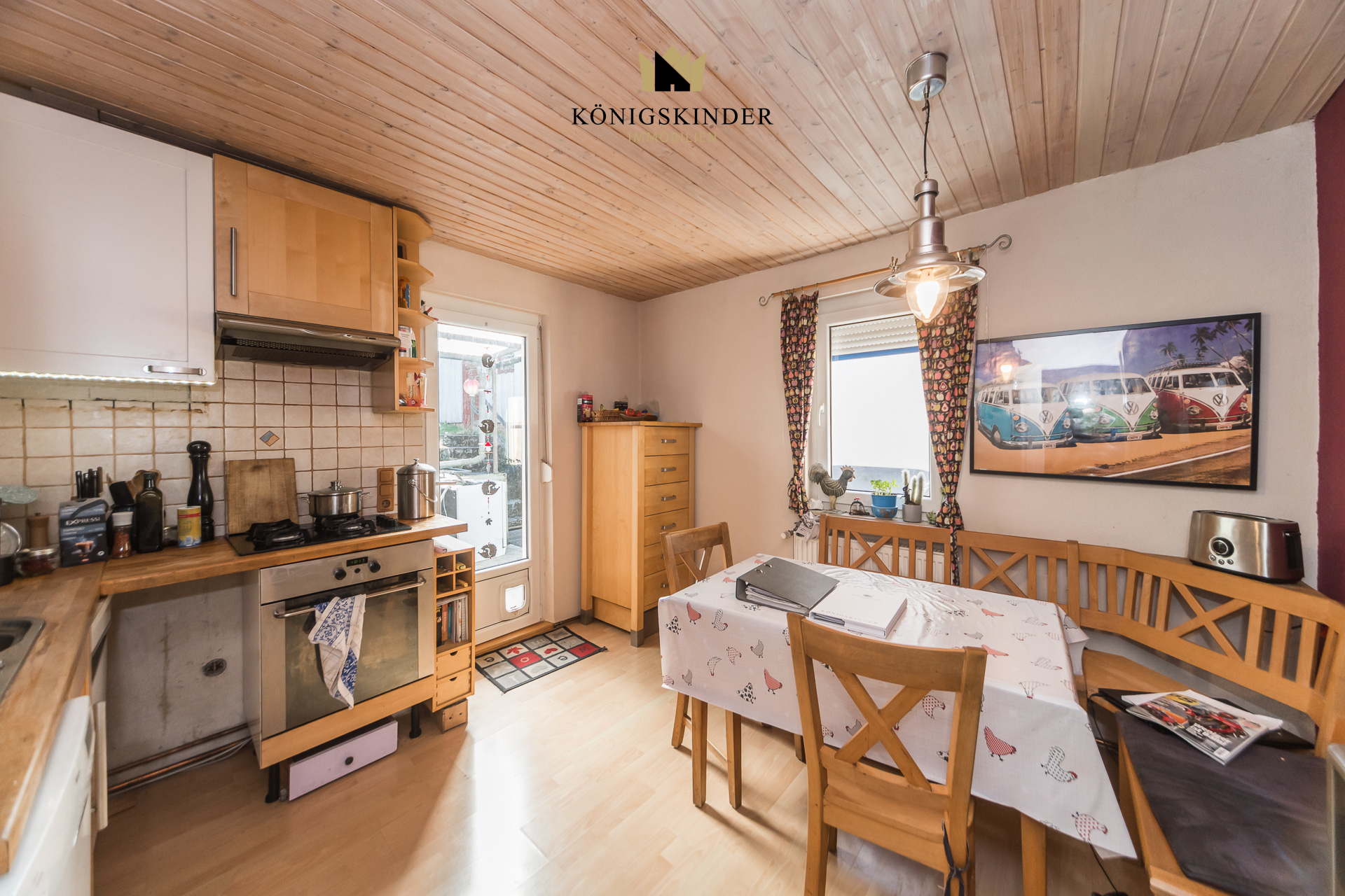 Eine Treppe führt hinauf in den zentralen Wohnbereich: Hier erwartet Sie eine offene Küche mit gemütlichem Essplatz, ein modernes Badezimmer, welches im Jahre 2016 saniert wurde sowie ein helles Wohnzimmer zum Entspannen. Von der Küche aus gelangen Sie direkt auf die Terrasse – der perfekte Ort für Mahlzeiten im Freien – und weiter in den großen, grünen Garten, der zum Spielen, Gärtnern oder Sonnen einlädt.