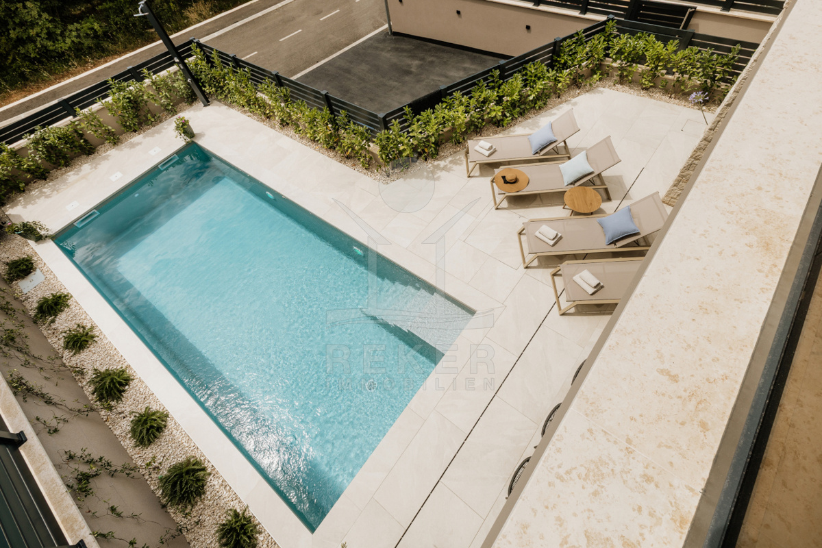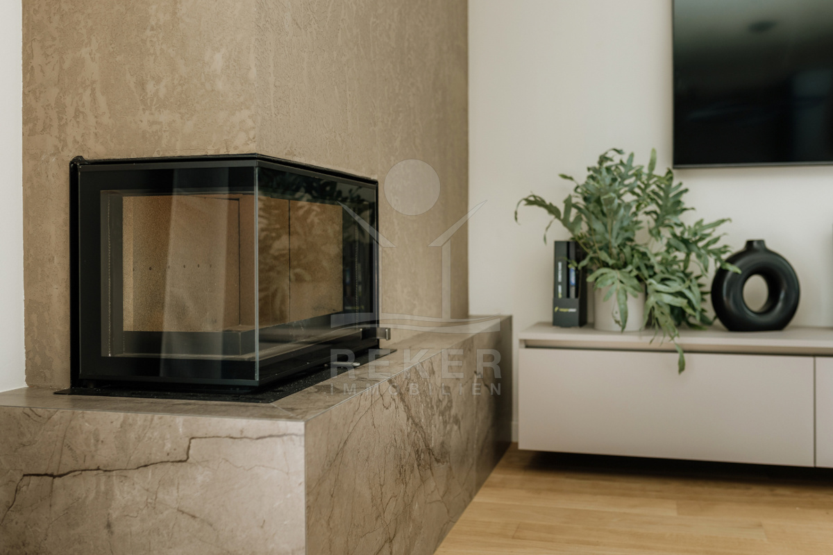 Morgens auf dem Balkon mit 16 m² frühstücken, tagsüber am eigenen Pool entspannen, abends am Kamin sitzen – dieses Haus macht jeden Tag zu einem Erlebnis. Entdecken Sie Ihr mediterranes Lebensgefühl.