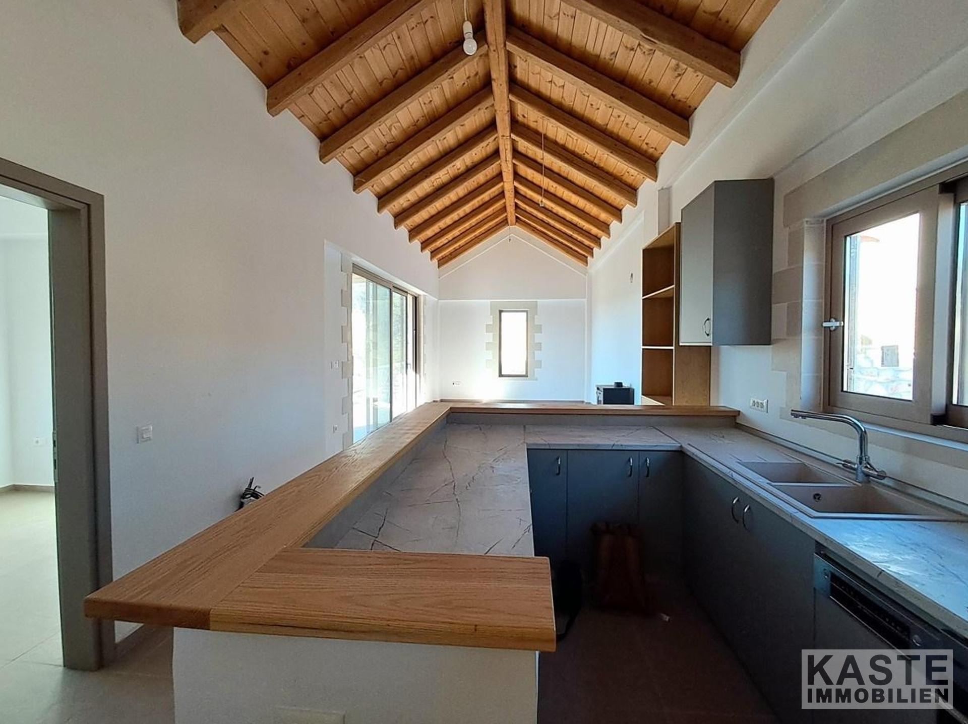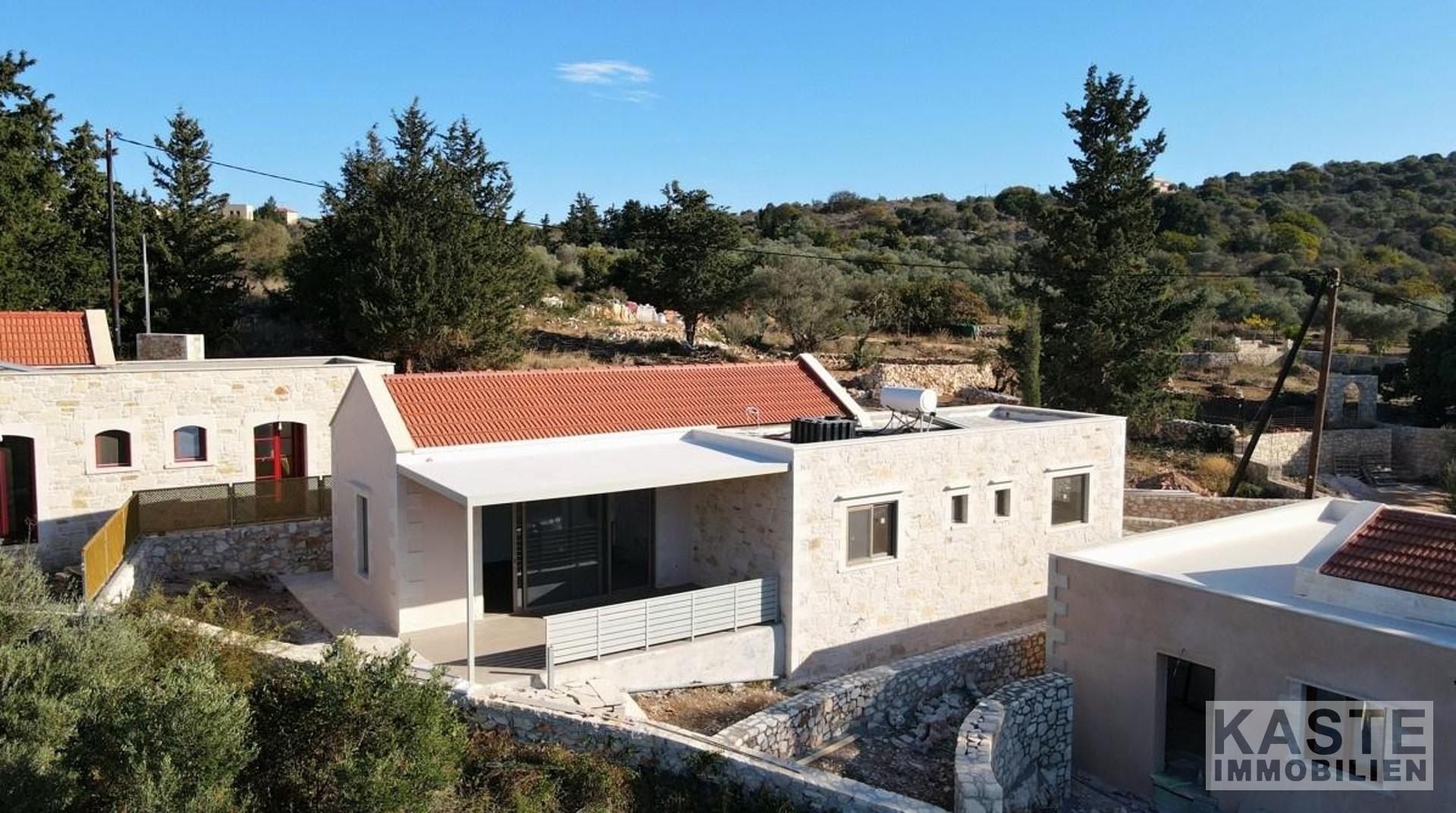 Die großzügige Terrasse und der liebevoll gestaltete Außenbereich laden zum Verweilen ein. Genießen Sie von hier aus die atemberaubende Aussicht auf die umliegenden Berge und die malerische Landschaft Kretas. Der Gartenbereich wird nach Ihren individuellen Wünschen finalisiert – Pflanzen und Bäume (bis zu einem bestimmten Wert) dürfen Sie selbst auswählen. Zusätzlich wird ein gemütlicher Grillplatz eingerichtet, perfekt für gesellige Abende im Freien.