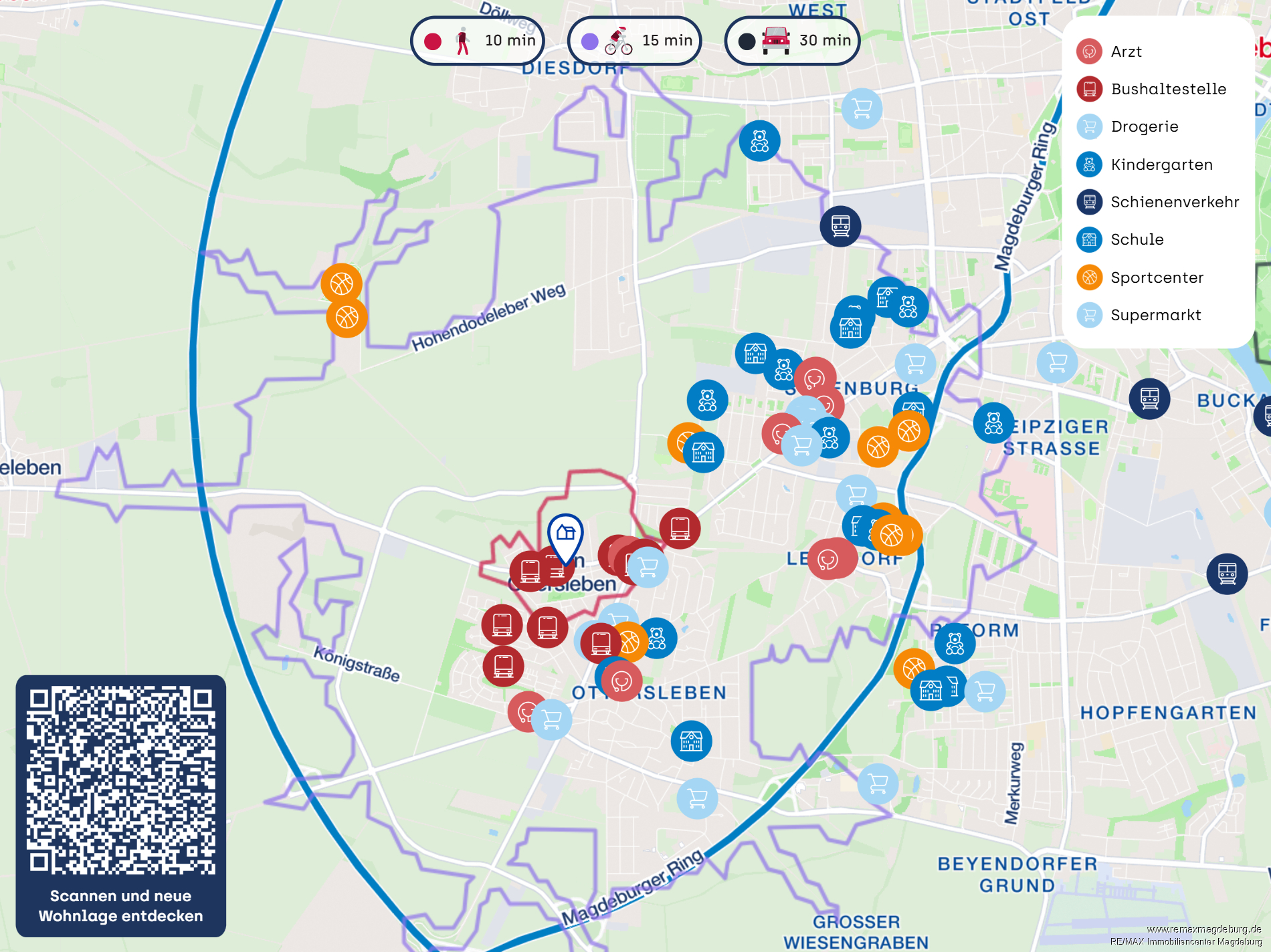 Einkaufsmöglichkeiten, Supermärkte, Apotheken sowie Ärzte befinden sich in der Nähe. Kindergärten und Schulen sind gut erreichbar und machen den Stadtteil besonders attraktiv für Familien. Zahlreiche Grünflächen wie der Sohlener Park und das Ottersleber Feld bieten vielseitige Freizeit- und Erholungsmöglichkeiten.