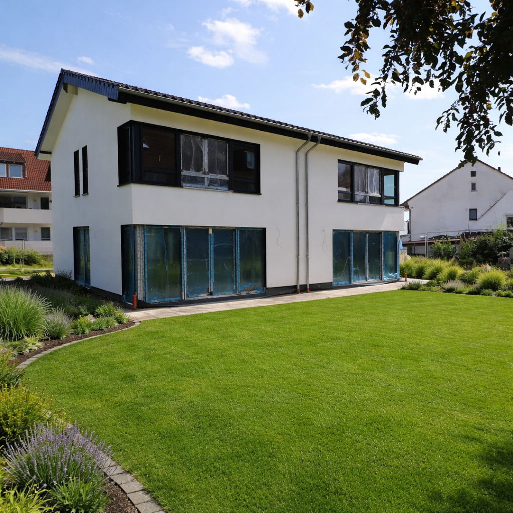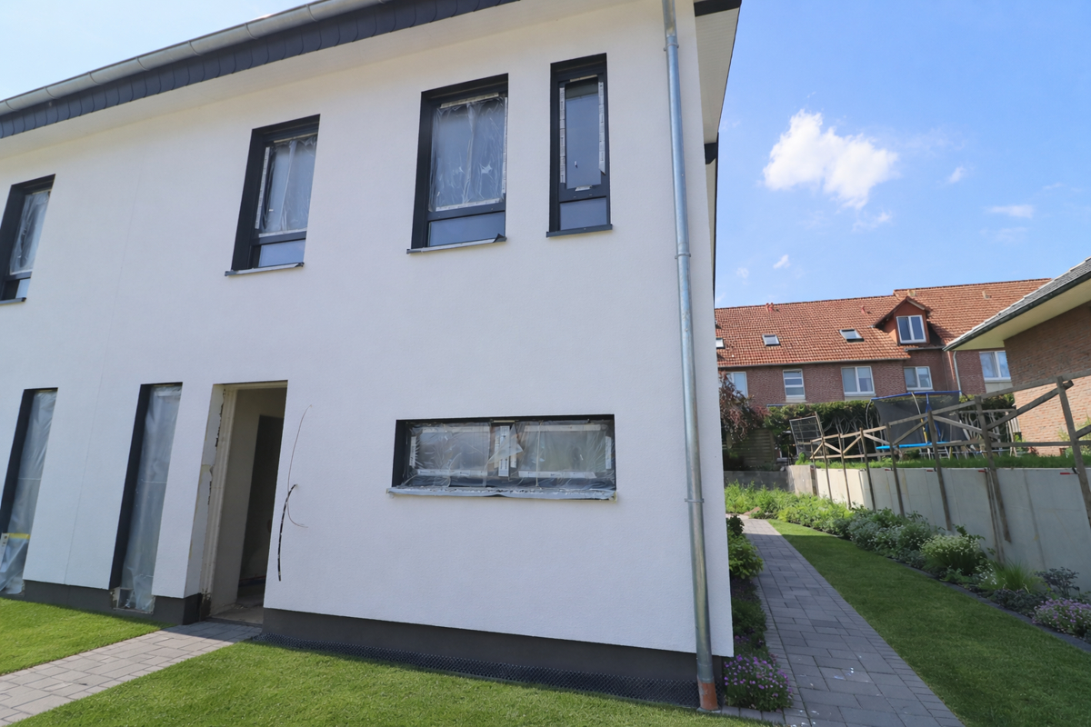 Willkommen im neuen Zuhause – Einzug noch 2026 geplant? Auf einem ca. 600 m² großen Grundstück entstehen aktuell zwei moderne Doppelhaushälften. Die Fertigstellung ist für Ende 2026 geplant. Noch haben Sie die Möglichkeit, viele Ausstattungsdetails wie Bodenbeläge, Badausstattung und Innentüren nach Ihren persönlichen Wünschen zu gestalten. Raumkonzept – durchdacht und familienfreundlich Jede Doppelhaushälfte bietet ca. 120 m² Wohnfläche, verteilt auf zwei Etagen mit insgesamt vier Zimmern. Im Erdgeschoss befinden sich: •ein Gäste-WC •ein praktischer Hauswirtschaftsraum •ein großzügiger Wohn- und Essbereich mit offener Küche und Zugang zur Terrasse mit Blick in den Garten Im Obergeschoss erwarten Sie drei helle, gut geschnittene Schlafzimmer, die sich ideal als Kinderzimmer, Büro oder Gästezimmer nutzen lassen. Zusätzlich steht Ihnen ein komfortables Badezimmer zur Verfügung – ausgestattet mit einer modernen Dusche und einer entspannenden Eckbadewanne.