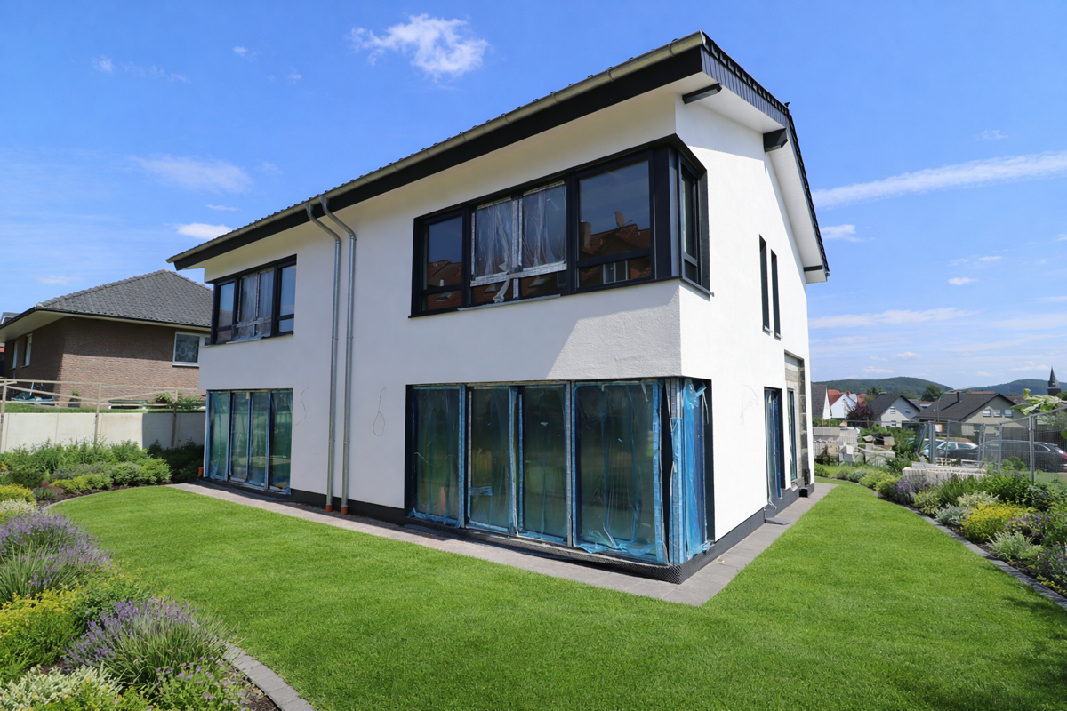 Weitere Highlights: •Moderne Luft-Wasser-Wärmepumpe für umweltfreundliches Heizen •Fußbodenheizung in allen Wohnräumen •Bodentiefe Fenster mit 3-fach-Wärmeschutzverglasung •Elektrische Rollläden •Schwimmender Estrich mit Wärmedämmung •Malerarbeiten im Leistungsumfang enthalten •Optionale Photovoltaikanlage (nicht im Preis enthalten)