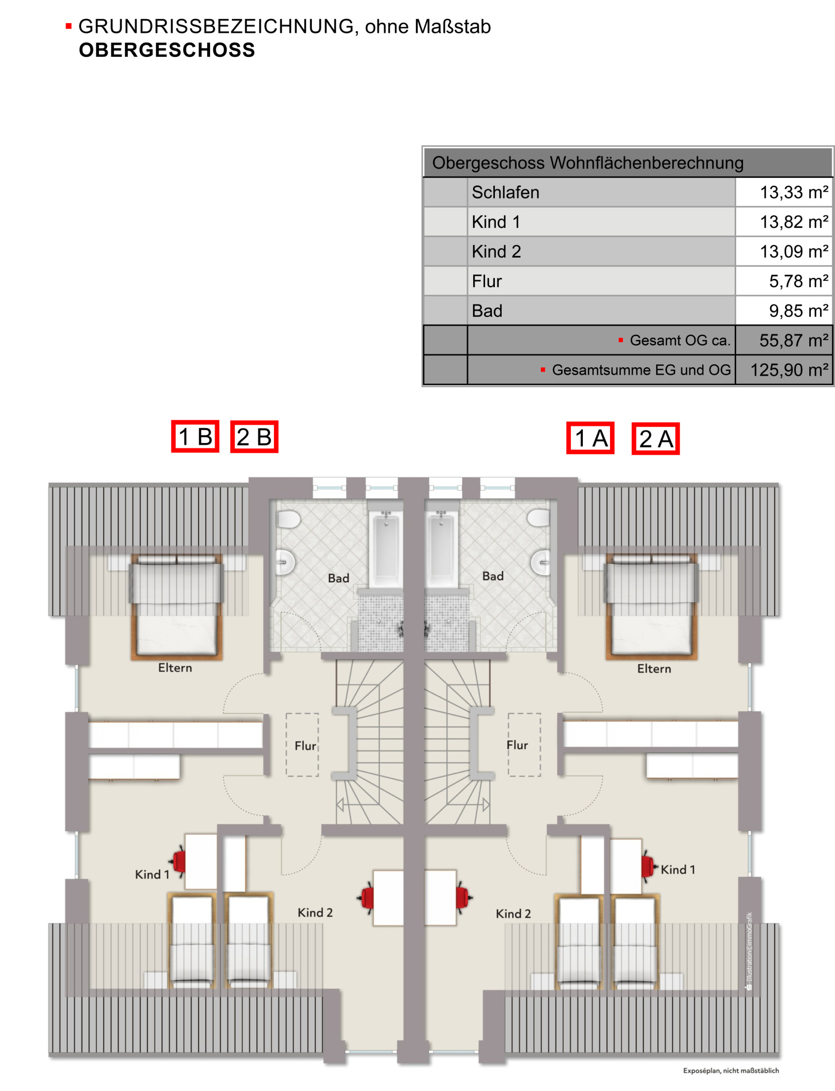 Neubau von zwei Doppelhäusern Familienfreundliche Wohnlage in Gütersloh-Avenwedde KfW40-Energieeffizienzstandard mit Luft-Wasser-Wärmepumpe Fußbodenheizung Zufahrt über einen gepflasterten Privatweg möglicher Carport inkl. Abstellraum Doppelhaushälfte 1A • GS 406 m² • 563.800 € Doppelhaushälfte 1B • GS 436 m² • 563.800 € Doppelhaushälfte 2A • GS 455 m² • 579.200 € - reserviert Doppelhaushälfte 2B • GS 533 m² • 576.200 € ca. 126 m² Wohnfläche Haus 2A und Haus 2B sind unterkellert