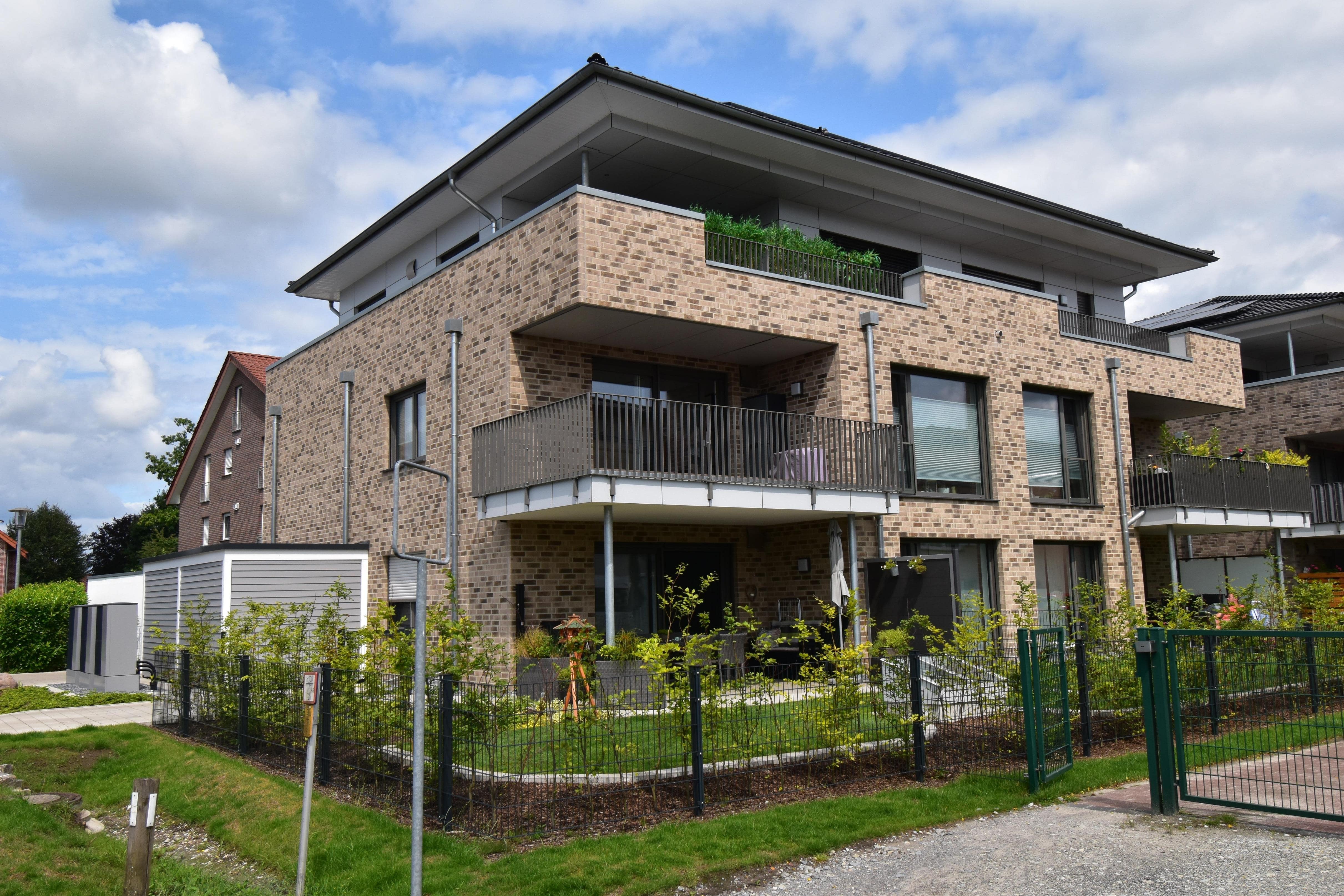 Die Erdgeschosswohnungen verfügen über eine Terrasse mit kleiner Gartenfläche, die Wohnungen im 1. Obergeschoss über einen teilweise überdachten Balkon und die Wohnungen des Staffelgeschosses über großzügige Dachterrassen.