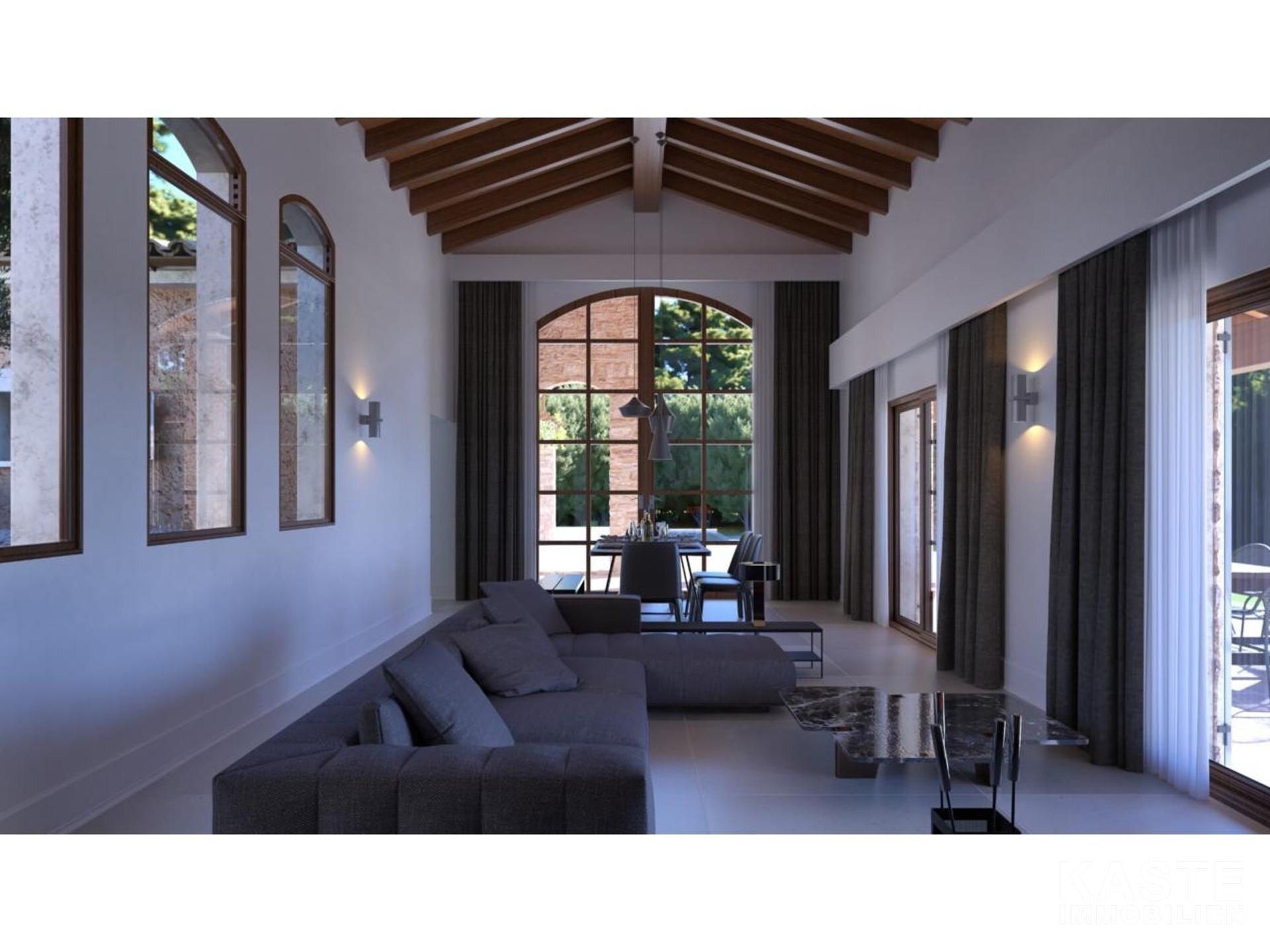 Das Erdgeschoss besteht aus vier Doppelzimmern, von denen alle mit einem en suite Badezimmer und eines mit einem Ankleidezimmer ausgestattet wird. Es gibt ein Gäste-Bad, eine moderne Küche und ein hell und offen gestaltetes Wohnzimmer. Im Untergeschoss verfügt die Villa über eine große Garage und einen Fitnessraum. Auf dem Grundstück ist ein großer Swimmingpool geplant. Außerdem wird das Grundstück von Natur und Bäumen umgeben sein in einer sehr ruhigen Lage.