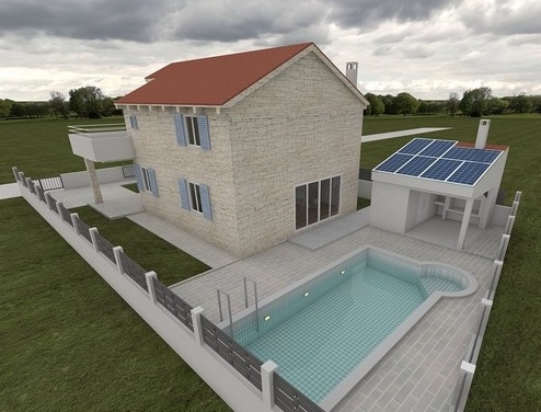 Bei diesem Angebot handelt es sich um einen Neubau eines mediterranen Familienhauses mit Swimmingpool in Vrsi, Region Zadar.
