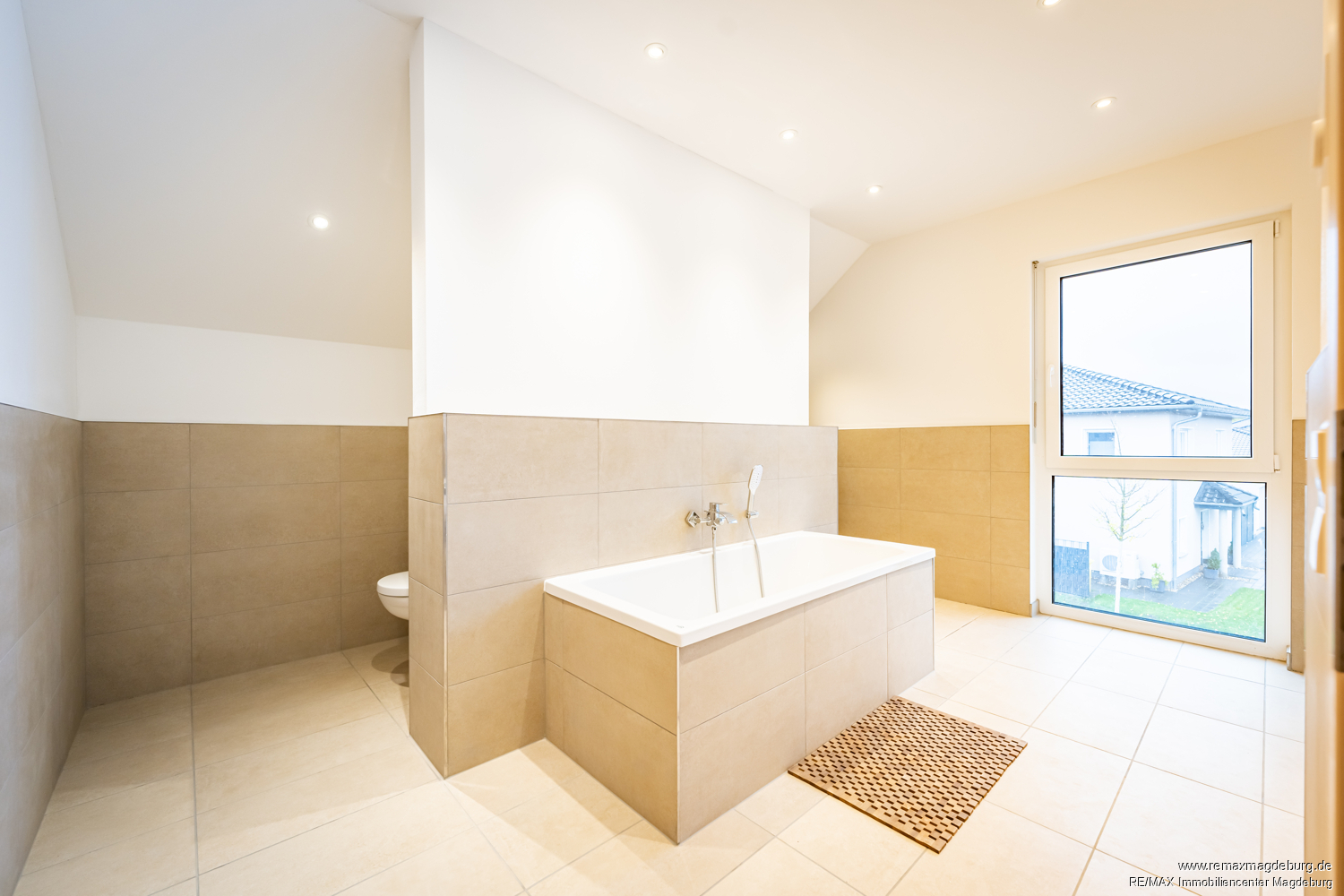 Im Dachgeschoss setzt sich das hochwertige Wohngefühl fort. Das großzügige Badezimmer ist mit Badewanne, ebenerdiger Dusche und einem Waschmaschinenanschluss ausgestattet und lädt zum Entspannen ein. Drei helle, vielseitig nutzbare Zimmer bieten ideale Voraussetzungen für Familienleben, Hobbys oder individuelle Rückzugsorte. Bodentiefe Fenster sorgen auch hier für eine freundliche und lichtdurchflutete Atmosphäre. Ergänzt wird das Raumangebot durch einen Spitzboden, der zusätzlichen Stauraum bietet.