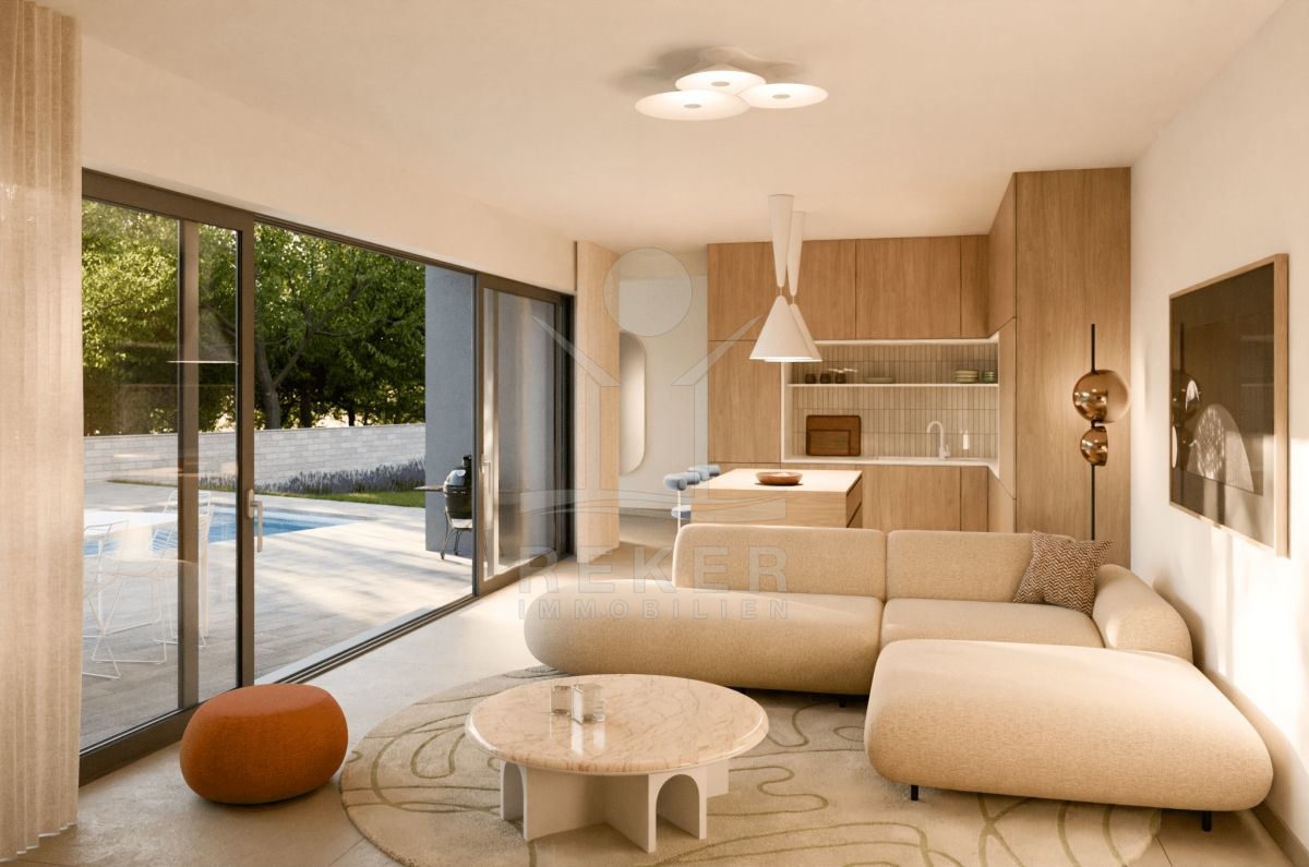 Der Neubau befindet sich an einem ruhigen Ort auf der malerischen Insel Krk, umgeben von üppiger Natur und viel Grün. Mit nur etwa 750 Metern Entfernung zum Meer bieten sich Ihnen unzählige Möglichkeiten, die mediterrane Lebensart hautnah zu erleben. Die Nähe zum Ortszentrum des Dorfes ermöglicht Ihnen einen schnellen Zugang zu lokalen, authentischen Restaurants und der Inselgemeinschaft.