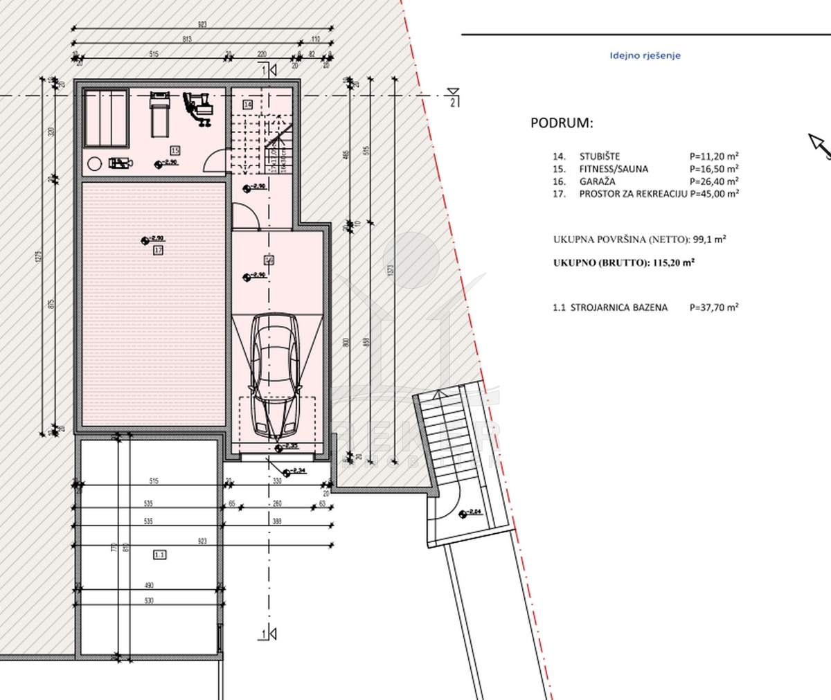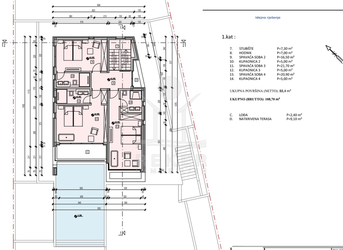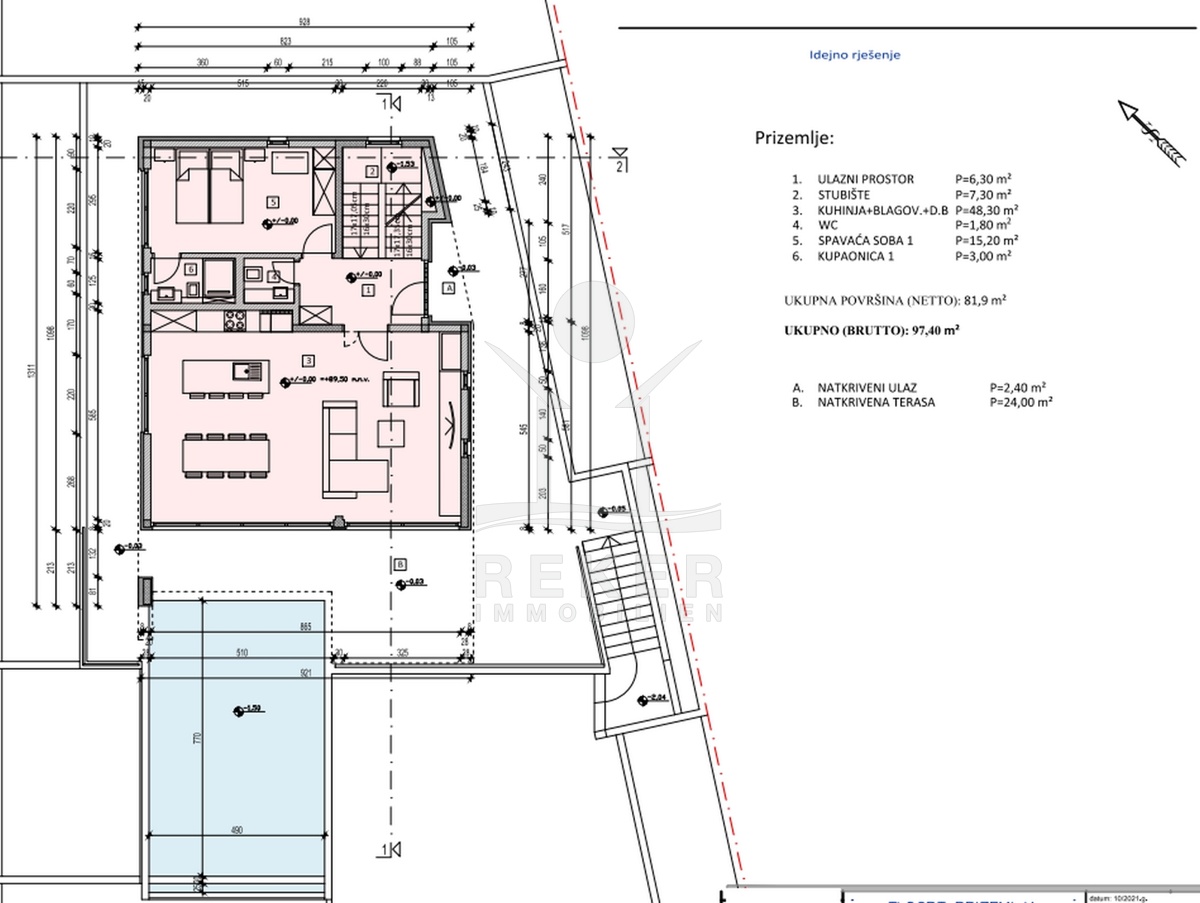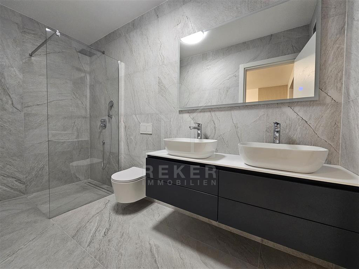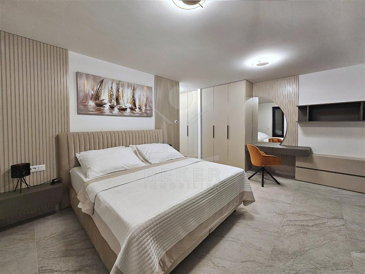 Das Anwesen liegt auf einem 910 m² großen Grundstück in Hanglage. Sie ist von wunderschönen kaskadenförmigen Gärten umgeben, die mit Olivenbäumen und dalmatinische Pflanzen bepflanzt wird. Das Gebäude erstreckt sich über 3 Etagen und verfügt über eine Wohnfläche von 320 m². Die Bauarbeiten und Fertigstellung sind voraussichtlich Sommer 2024 abgeschlossen. Das Haus ist mit einem Untergeschoss ausgestattet und bietet zusätzliche Räume sowie einen Wellness- und Fitnessbereich.