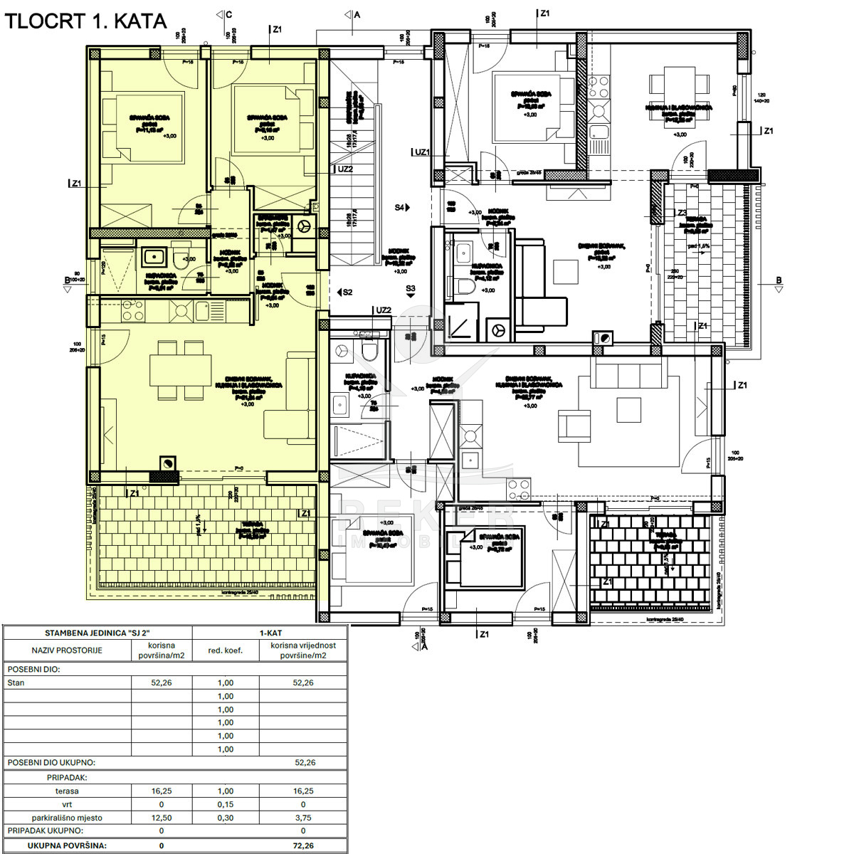 Das Gebäude umfasst acht Wohnungen auf drei Etagen: Erdgeschoss, 1. Obergeschoss und 2. Obergeschoss. Überschaubar und angenehm privat. Eine Dachterrasse erweitert das Haus um zusätzlichen Freiraum. Beim Bau setzt der Entwickler auf hochwertige Materialien und eine solide Ausstattung. Die Fertigstellung ist für 2026 vorgesehen. Jede Wohnung verfügt über einen Stellplatz direkt vor dem Haus. Bei Bedarf sichern Sie sich einen weiteren Stellplatz.