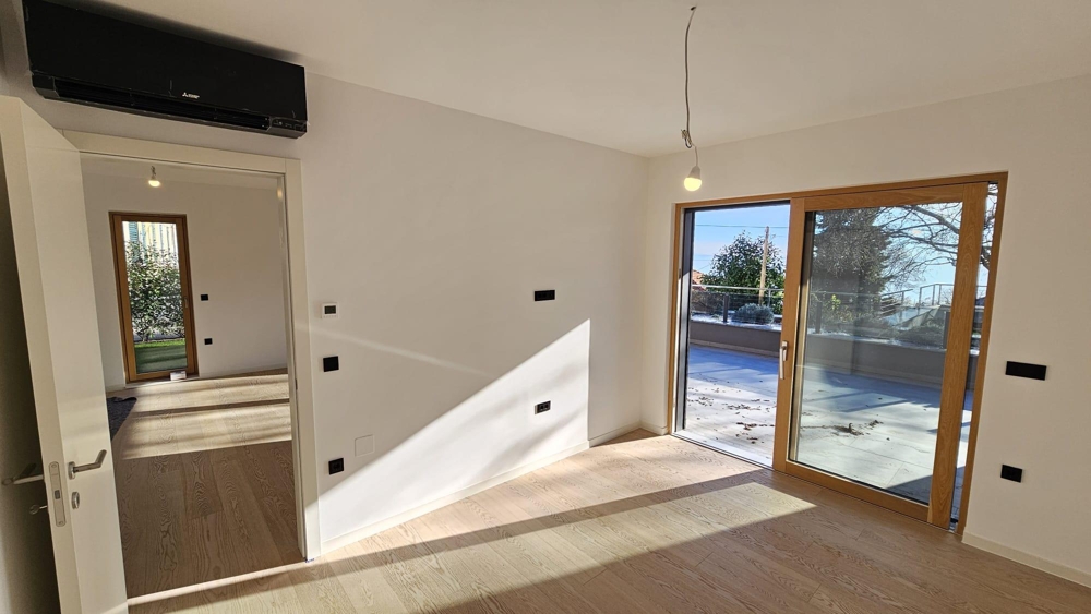 Zum Erwerb steht eine moderne Neubauwohnung im Erdgeschoss eines hochwertigen Wohnhauses in Kantrida, Rijeka, samt großzügigem Gartenanteil.