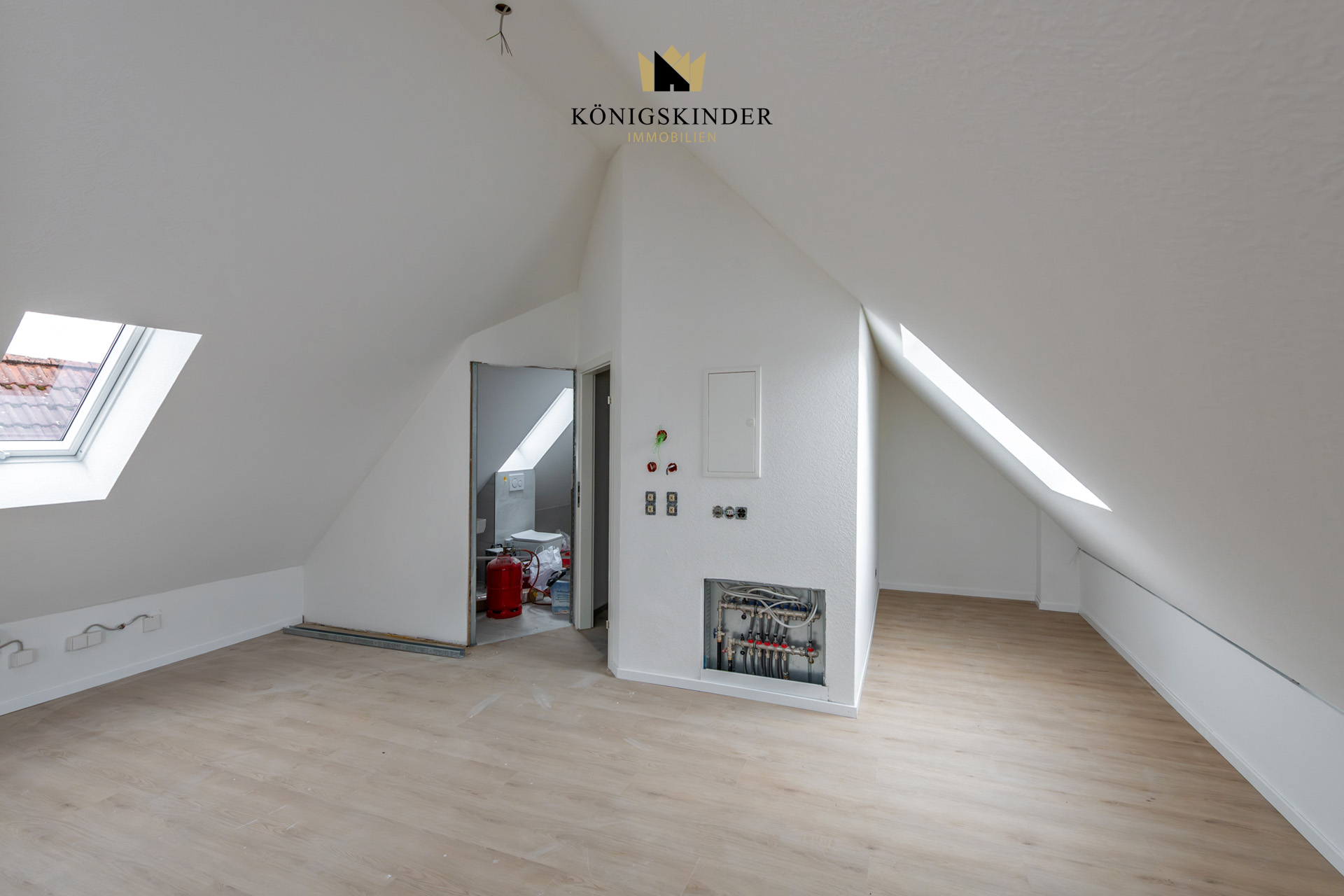 Wohnung W7 – Dachgeschoss: 559.000.- EUR zzgl. 25.000.- EUR Stellplatz Die Dachgeschosswohnung W7 bietet mit ca. 96 m² Wohnfläche ein großzügiges und zugleich besonderes Raumgefühl. Sie verfügt über einen offenen Wohn-, Koch- und Essbereich mit integriertem Schlafbereich, ein weiteres Schlafzimmer, einen Arbeitsraum, 2x Duschbad mit WC, Abstellfläche sowie eine Kombination aus Balkon und Loggia, die anteilig in die Wohnfläche einfließen. Ergänzt wird die Wohnung durch einen Abstellraum im Untergeschoss mit ca. 5,7 m².