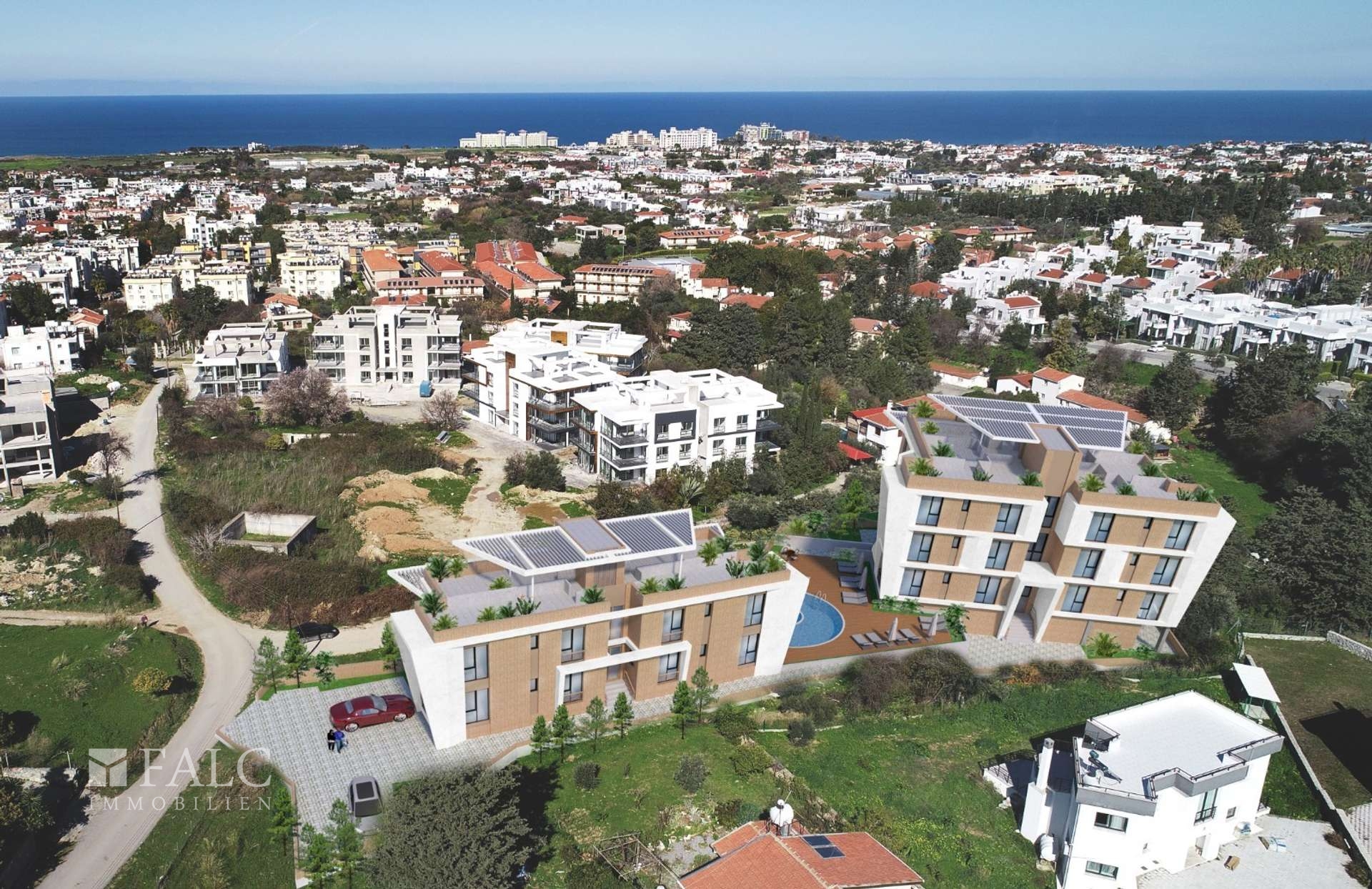 Zum Verkauf steht eine exklusive Etagenwohnung in Alsancak, in Kyrenia. Dieses luxuriöse Wohnobjekt befindet sich in einem massiv gebauten Gebäude, das 2024 fertiggestellt wird. Mit einer Wohnfläche von ca. 71 m² bietet die Wohnung großzügigen Raum für ein komfortables Wohnen.