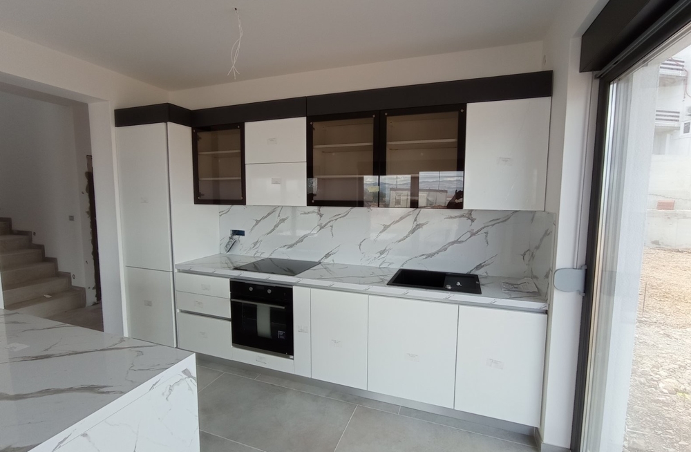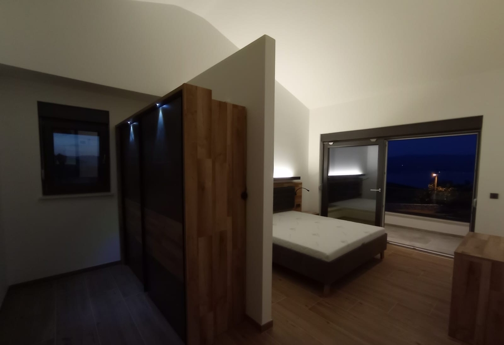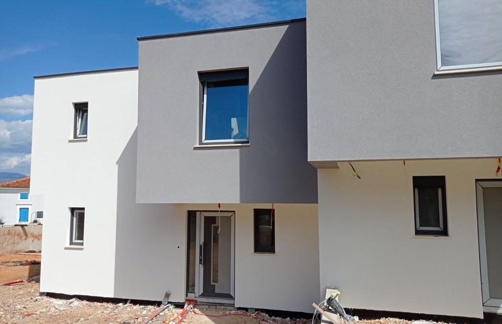Zum Verkauf steht eine moderne Doppelhaushälfte mit Swimmingpool und Meerblick in attraktiver Lage in Vrbnik, Insel Krk (Brücke zum Festland).