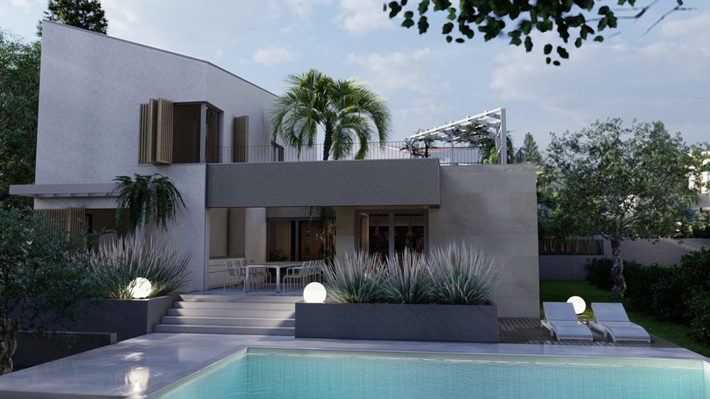 Die Fertigstellung ist für Herbst 2025 geplant. Die Villen entstehen in einer ruhigen und naturnahen Lage unweit von Malinska. Die Luftlinie zum Meer beträgt etwa 1000 Meter, und das Ufer sowie der Ortskern von Malinska sind über die Straße in rund 2000 Metern erreichbar.