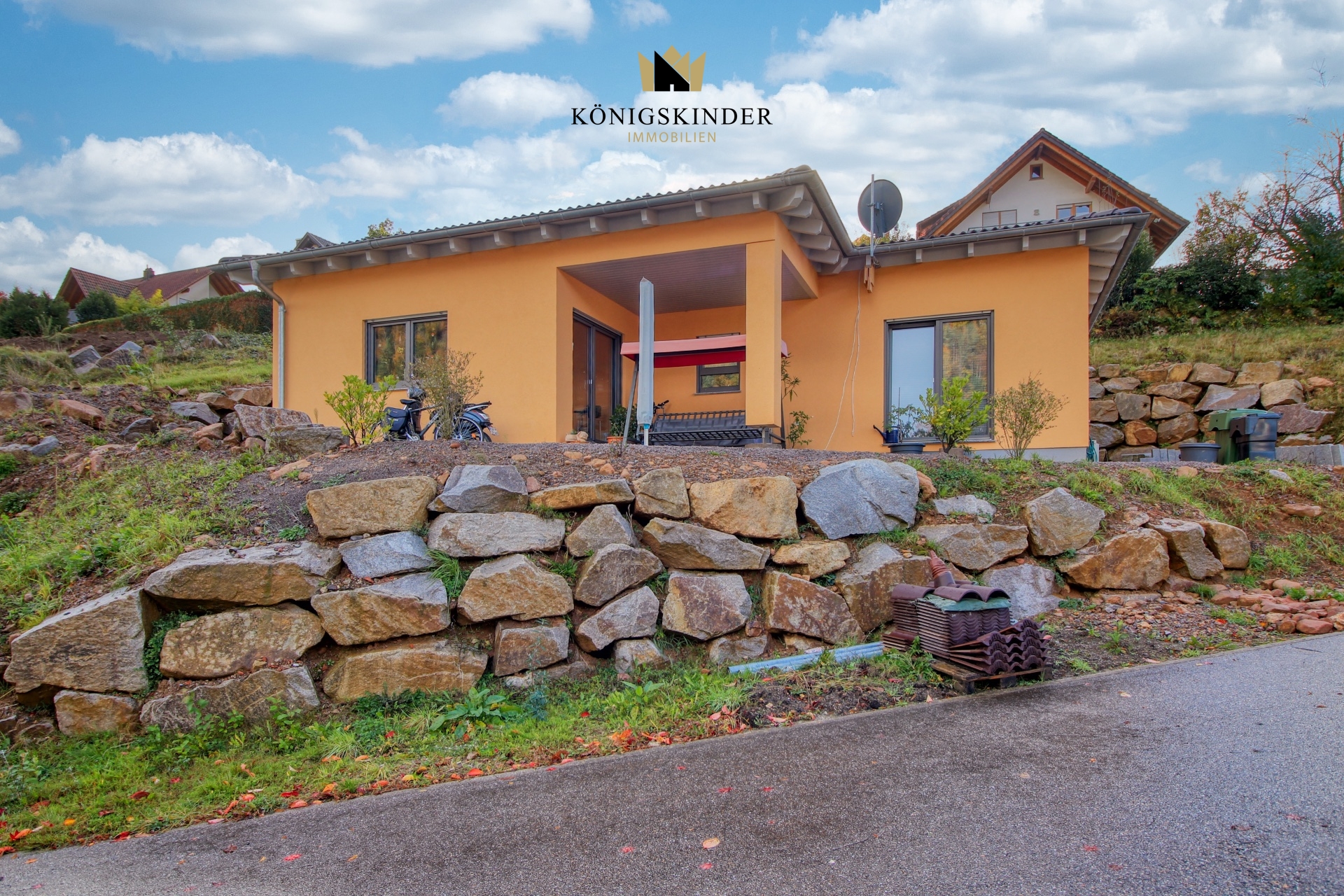 Der moderne Neubau-Bungalow liegt in einem ruhigen Neubaugebiet in einer Sackgasse – perfekt für alle, die Privatsphäre und Entspannung suchen. Von hier genießen Sie einen wundervollen Blick ins Tal sowie auf die umliegenden Wiesen und Wälder – ein Ort, der sofort das Gefühl vermittelt: Hier bin ich zuhause.