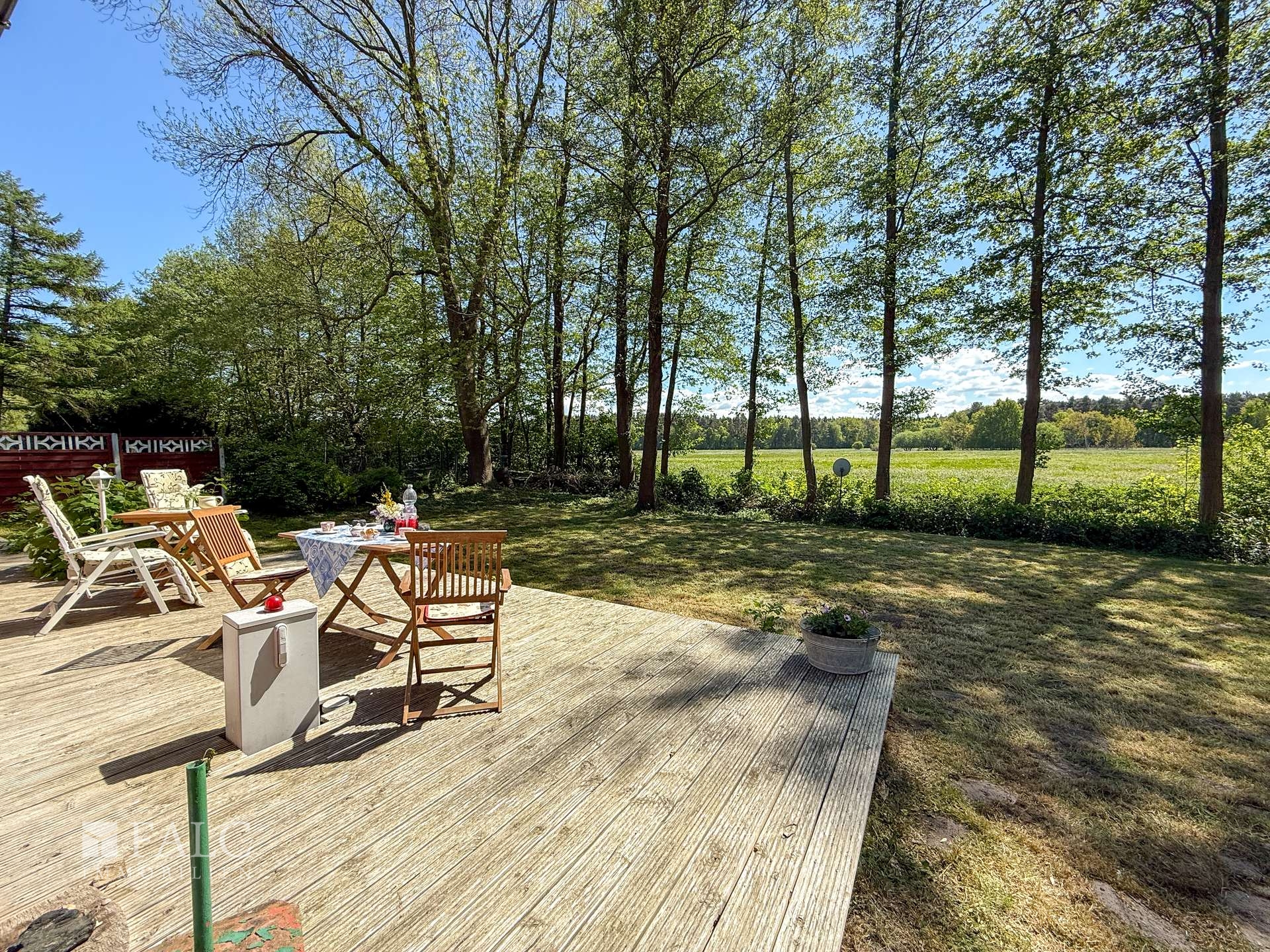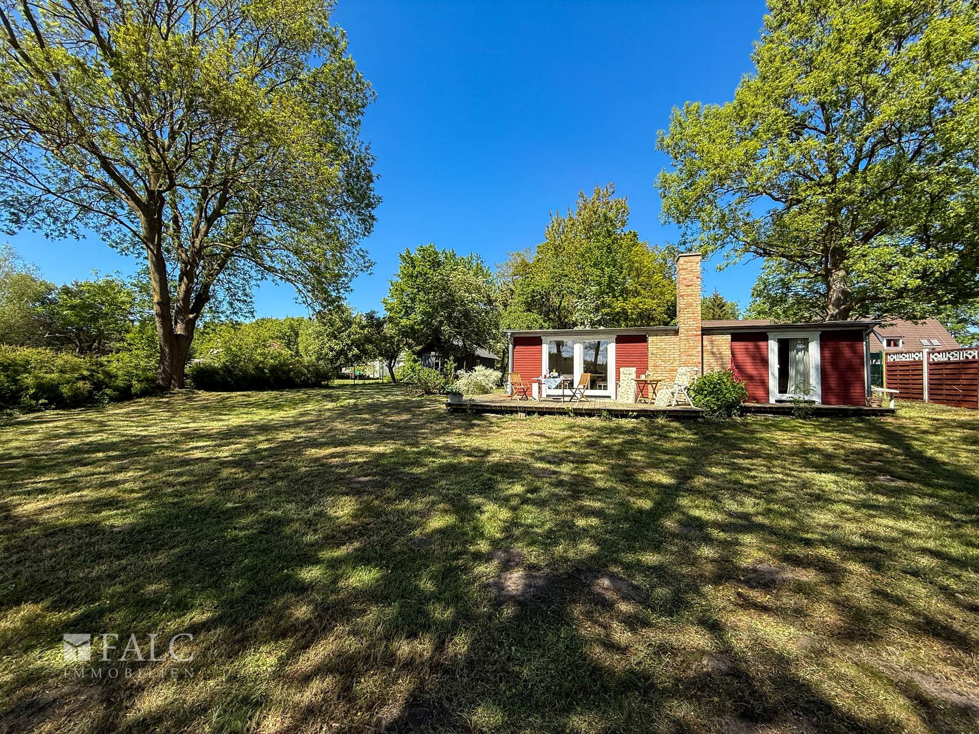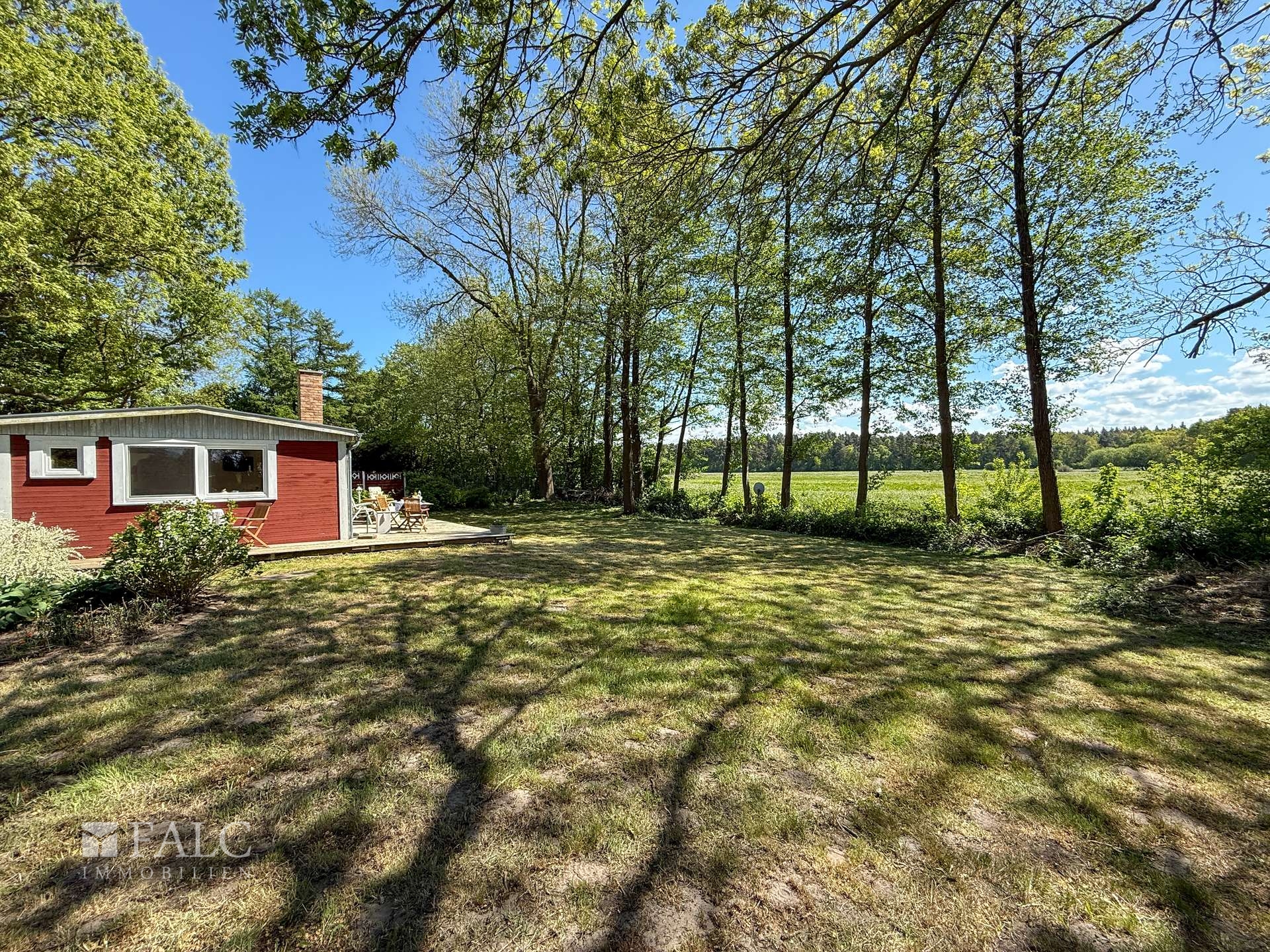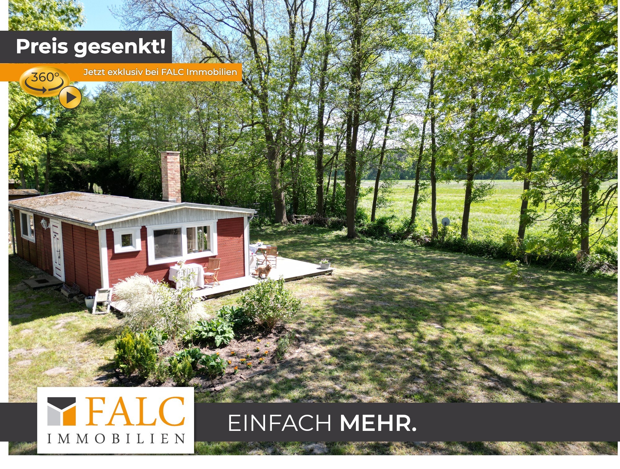 Willkommen an einem Ort, der mehr ist als nur ein Zuhause – ein Rückzugsort voller Charme, Ruhe und Naturverbundenheit. Dieses liebevoll renovierte Holzhäuschen, ursprünglich in den 1980er Jahren errichtet und 2012/2013 mit großer Sorgfalt modernisiert, lädt Sie ein, das Leben in seiner schönsten Form zu genießen. Auf ca. 50 m² bietet das Haus Raum für das Wesentliche: Zwei großzügige Zimmer, ein charmanter kleiner Flur sowie ein Badezimmer mit Dusche schaffen eine gemütliche Atmosphäre. Alles ist so gestaltet, dass Sie sich vom ersten Moment an zuhause fühlen – warm, einladend und durchdacht. Besonderes Highlight ist die offene Wohnküche, ausgestattet mit einer Küchenzeile und einem stilvollen, historischen Ofen – ein echtes Schmuckstück, das nicht nur optisch begeistert, sondern auch schnell und verlässlich den Raum beheizt. Die nach Süden ausgerichtete große Holzterrasse (ca. 25 m²) erweitert den Wohnraum ins Freie. Sowohl vom Schlafzimmer als auch von der Wohnküche haben Sie direkten Zugang zu dieser sonnigen Oase. Hier erleben Sie jeden Tag wie Urlaub: mit einem atemberaubenden Blick über weite Wiesen bis hin zum Waldrand, wo Sie morgens bei einer Tasse Kaffee Rehe und Kraniche beobachten können – ein Naturerlebnis der besonderen Art.
