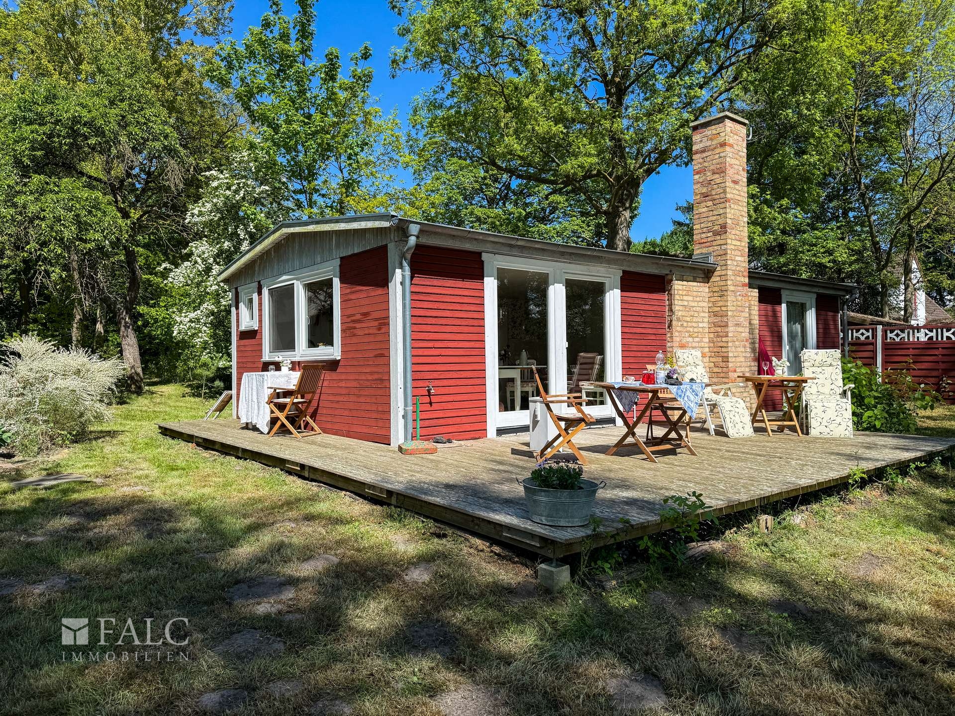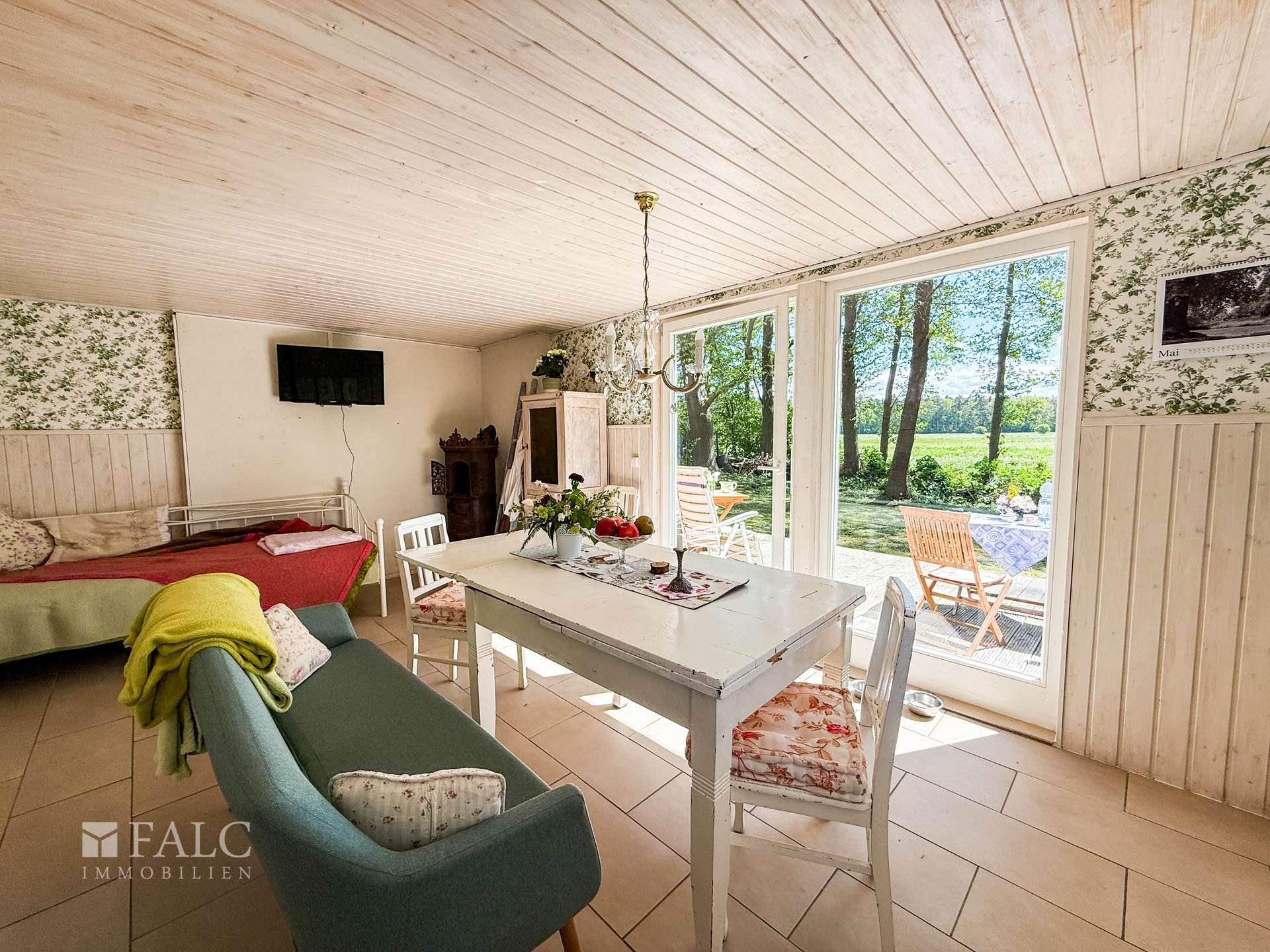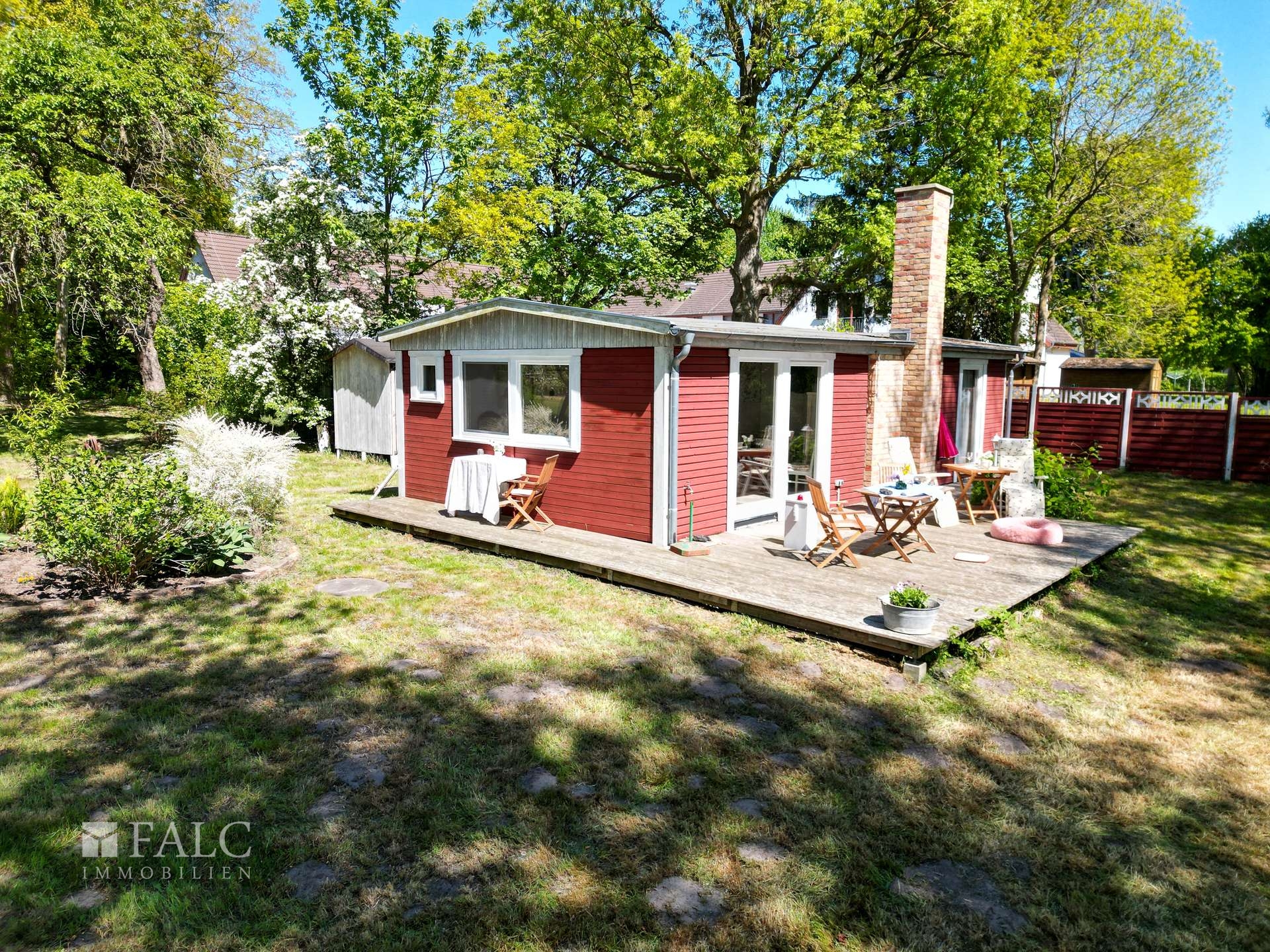 Willkommen an einem Ort, der mehr ist als nur ein Zuhause – ein Rückzugsort voller Charme, Ruhe und Naturverbundenheit. Dieses liebevoll renovierte Holzhäuschen, ursprünglich in den 1980er Jahren errichtet und 2012/2013 mit großer Sorgfalt modernisiert, lädt Sie ein, das Leben in seiner schönsten Form zu genießen. Auf ca. 50 m² bietet das Haus Raum für das Wesentliche: Zwei großzügige Zimmer, ein charmanter kleiner Flur sowie ein Badezimmer mit Dusche schaffen eine gemütliche Atmosphäre. Alles ist so gestaltet, dass Sie sich vom ersten Moment an zuhause fühlen – warm, einladend und durchdacht. Besonderes Highlight ist die offene Wohnküche, ausgestattet mit einer Küchenzeile und einem stilvollen, historischen Ofen – ein echtes Schmuckstück, das nicht nur optisch begeistert, sondern auch schnell und verlässlich den Raum beheizt. Die nach Süden ausgerichtete große Holzterrasse (ca. 25 m²) erweitert den Wohnraum ins Freie. Sowohl vom Schlafzimmer als auch von der Wohnküche haben Sie direkten Zugang zu dieser sonnigen Oase. Hier erleben Sie jeden Tag wie Urlaub: mit einem atemberaubenden Blick über weite Wiesen bis hin zum Waldrand, wo Sie morgens bei einer Tasse Kaffee Rehe und Kraniche beobachten können – ein Naturerlebnis der besonderen Art.