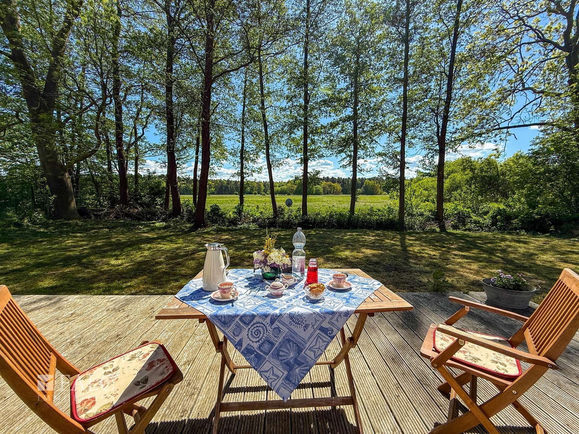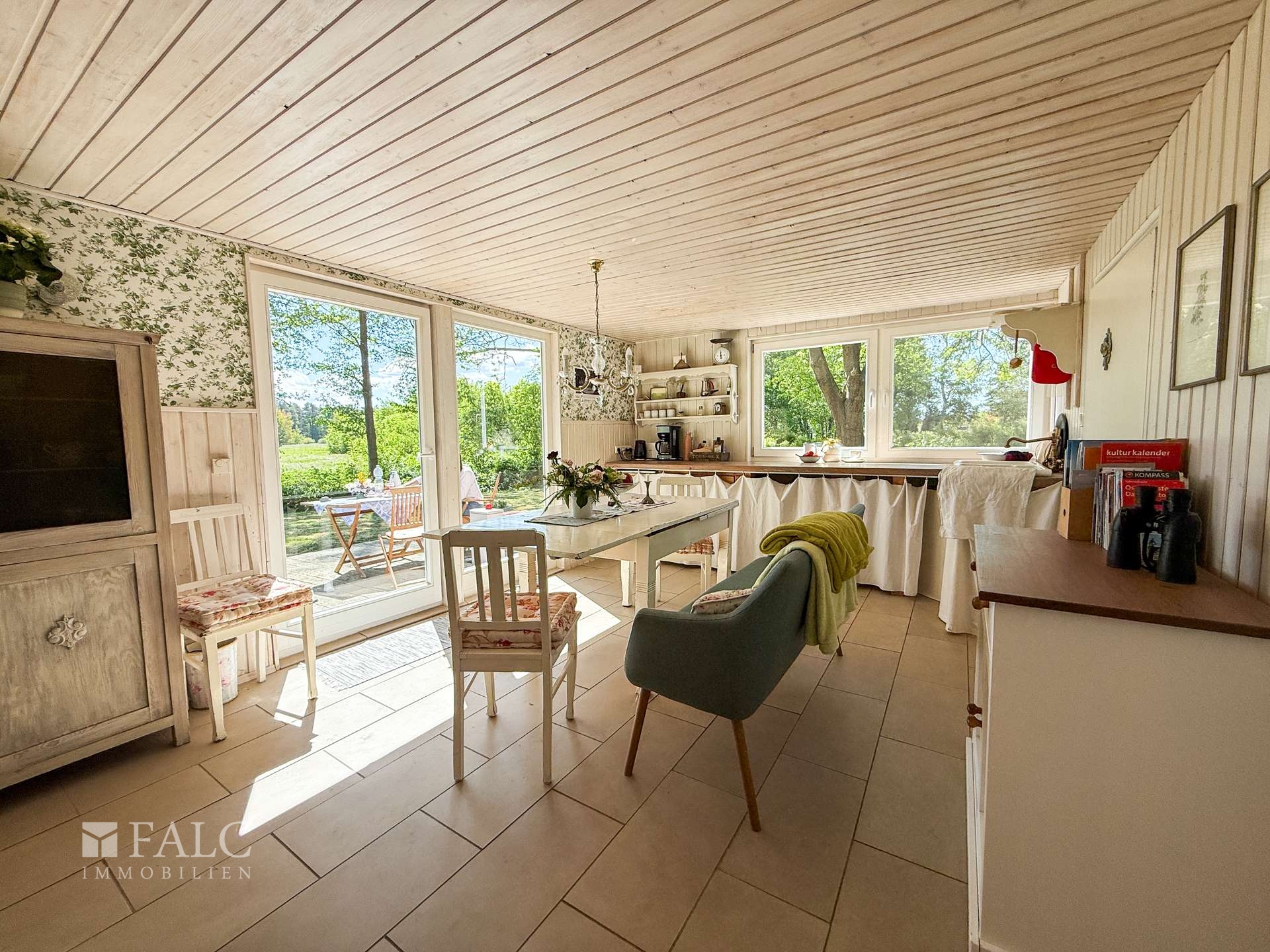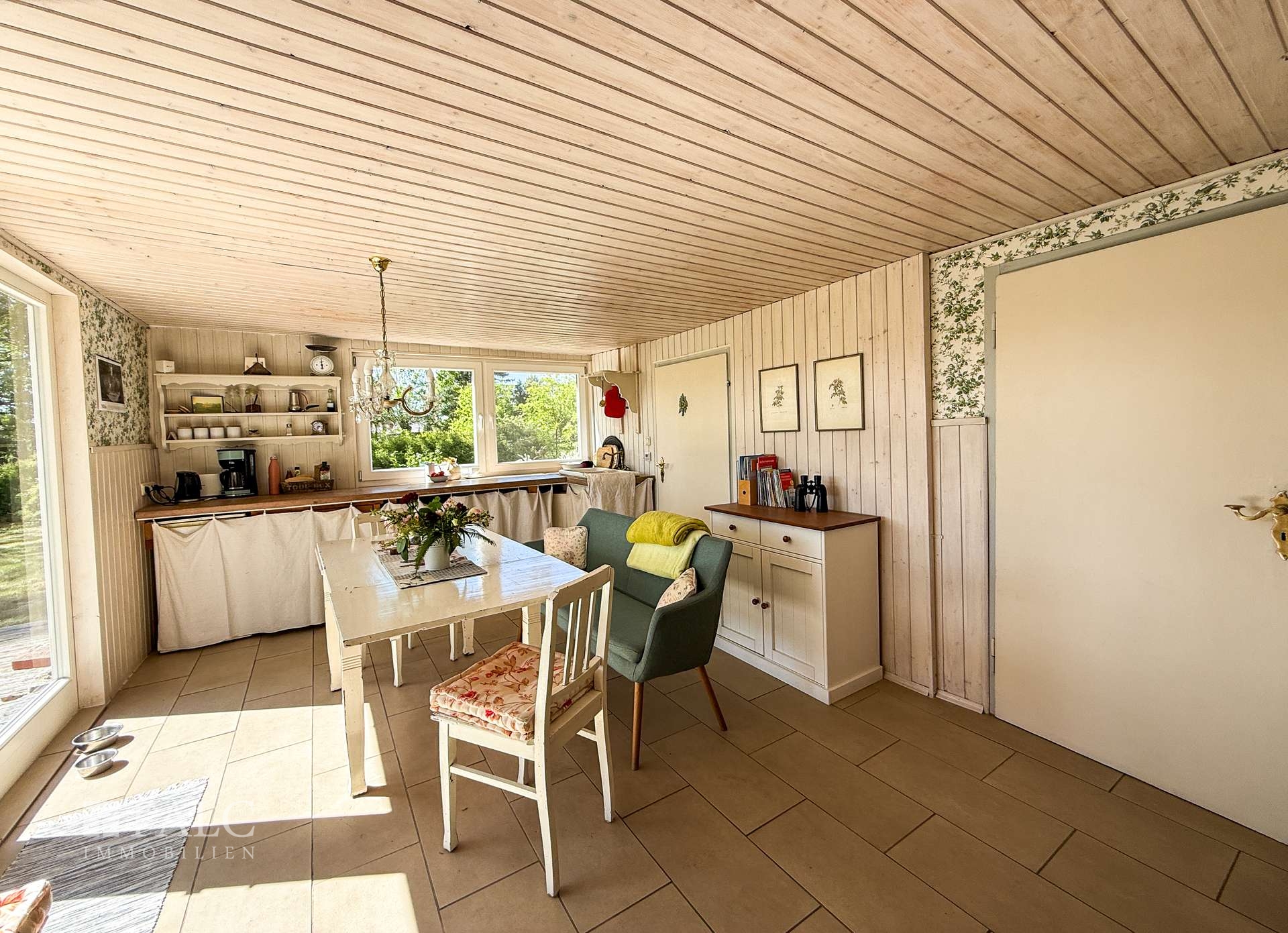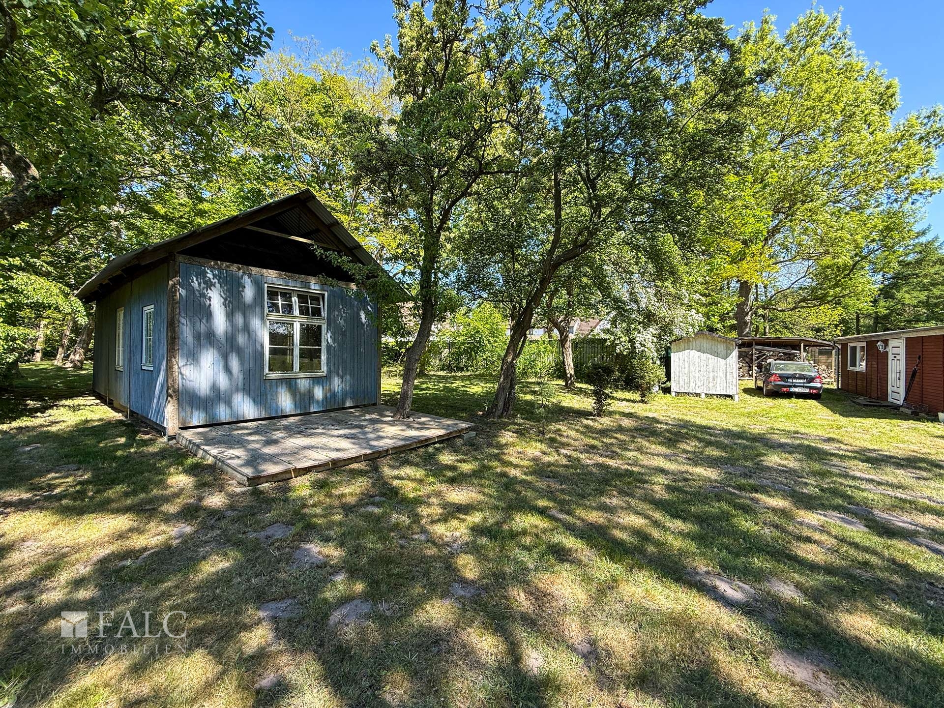 Willkommen an einem Ort, der mehr ist als nur ein Zuhause – ein Rückzugsort voller Charme, Ruhe und Naturverbundenheit. Dieses liebevoll renovierte Holzhäuschen, ursprünglich in den 1980er Jahren errichtet und 2012/2013 mit großer Sorgfalt modernisiert, lädt Sie ein, das Leben in seiner schönsten Form zu genießen. Auf ca. 50 m² bietet das Haus Raum für das Wesentliche: Zwei großzügige Zimmer, ein charmanter kleiner Flur sowie ein Badezimmer mit Dusche schaffen eine gemütliche Atmosphäre. Alles ist so gestaltet, dass Sie sich vom ersten Moment an zuhause fühlen – warm, einladend und durchdacht. Besonderes Highlight ist die offene Wohnküche, ausgestattet mit einer Küchenzeile und einem stilvollen, historischen Ofen – ein echtes Schmuckstück, das nicht nur optisch begeistert, sondern auch schnell und verlässlich den Raum beheizt. Die nach Süden ausgerichtete große Holzterrasse (ca. 25 m²) erweitert den Wohnraum ins Freie. Sowohl vom Schlafzimmer als auch von der Wohnküche haben Sie direkten Zugang zu dieser sonnigen Oase. Hier erleben Sie jeden Tag wie Urlaub: mit einem atemberaubenden Blick über weite Wiesen bis hin zum Waldrand, wo Sie morgens bei einer Tasse Kaffee Rehe und Kraniche beobachten können – ein Naturerlebnis der besonderen Art.