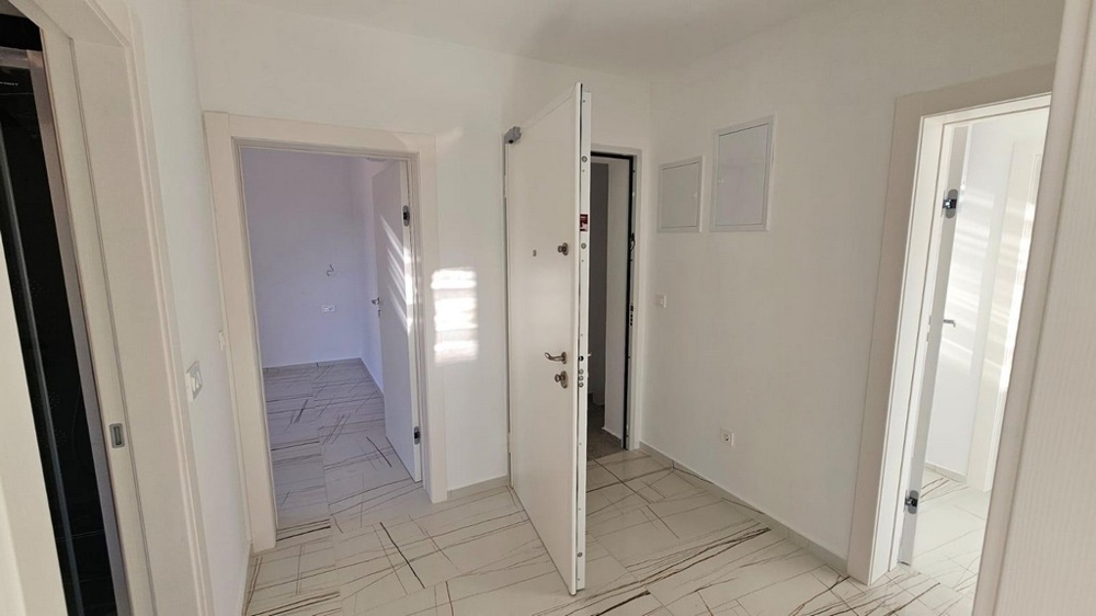 Die Wohnung befindet sich im ersten Stockwerk eines neuen Gebäudes und sie bietet eine Wohnfläche von ca. 72 m² mit zwei Schlafzimmern, einem Badezimmer, Wohnzimmer mit Küche und Essbereich sowie einem Balkon.