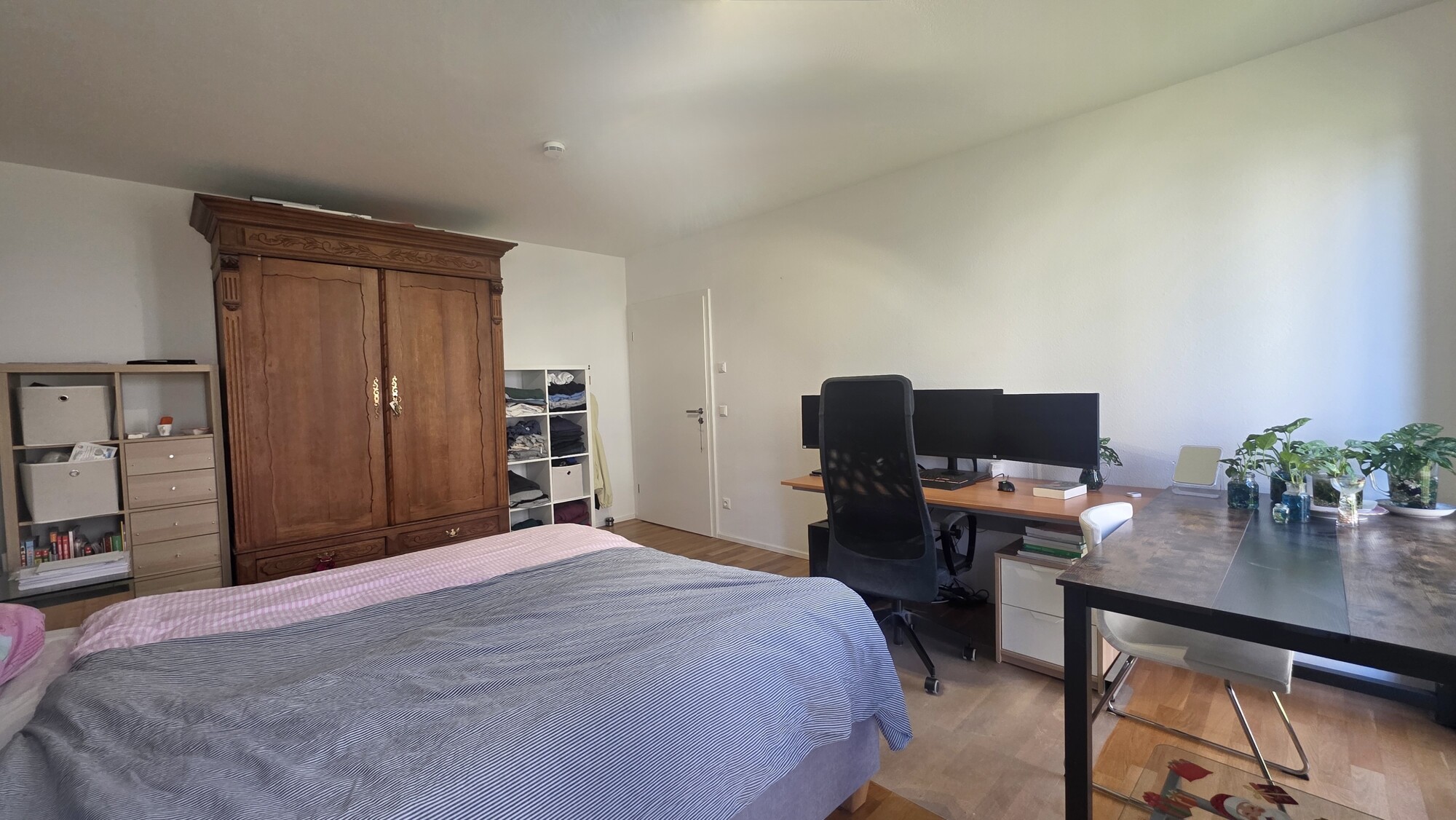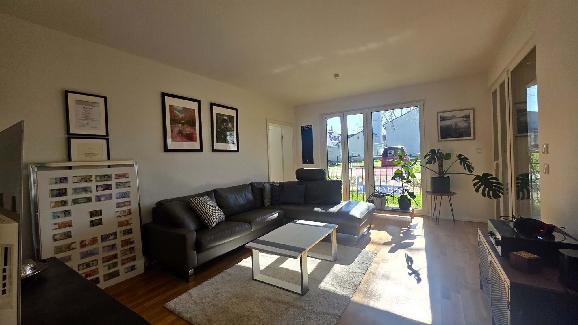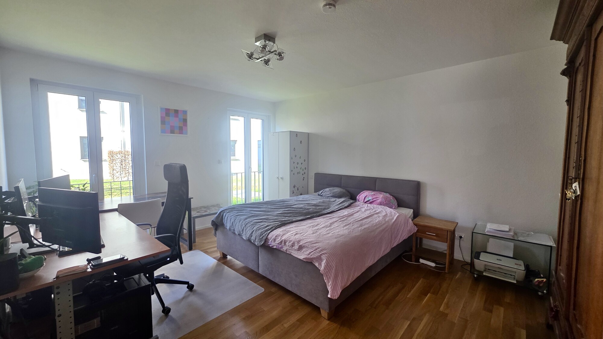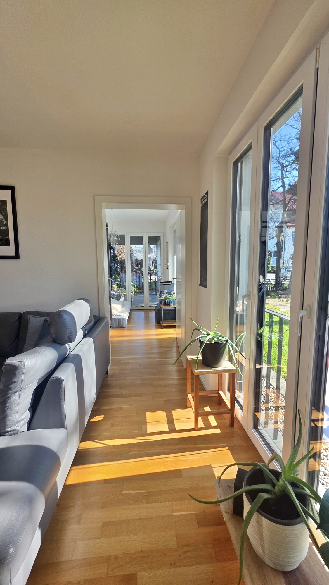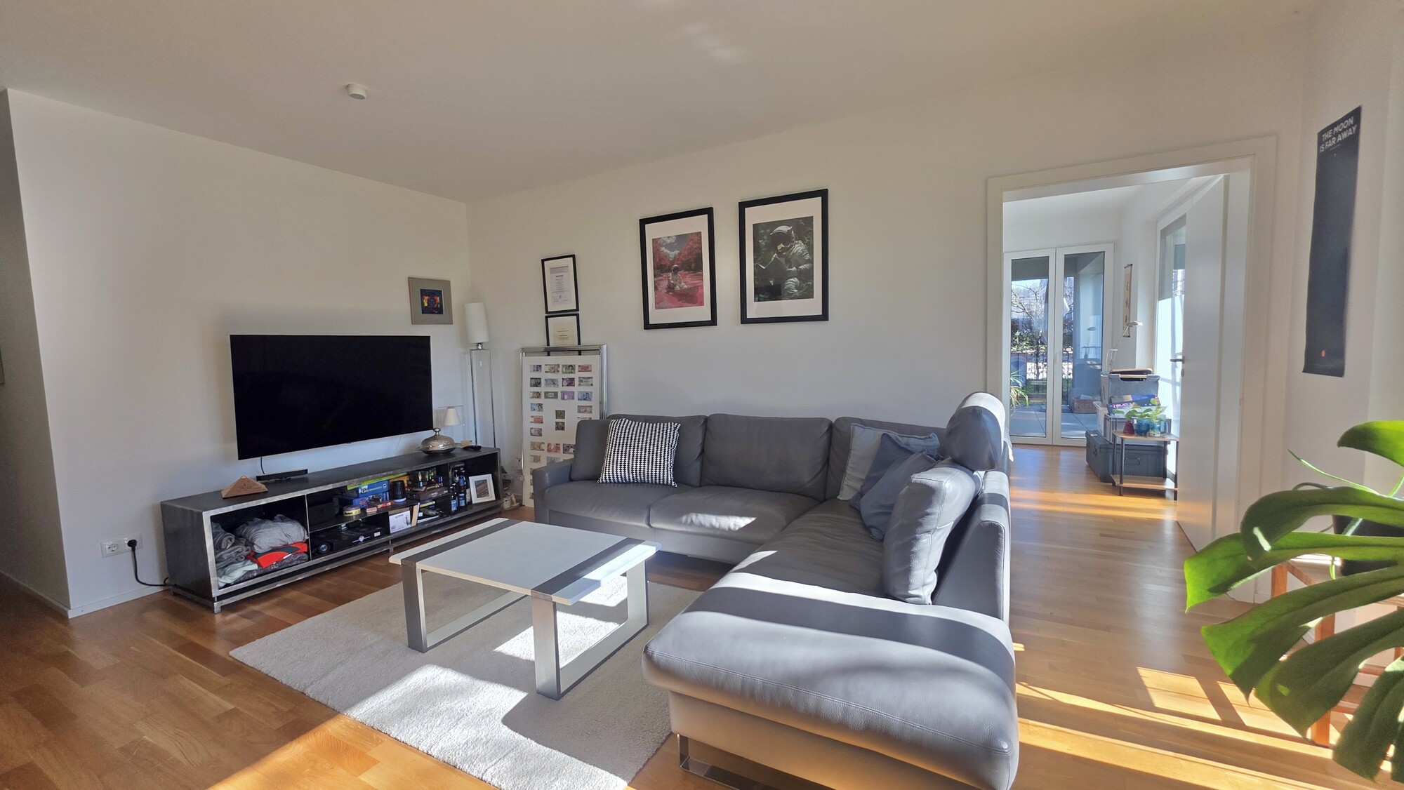 Das Zentrum der Wohnung mit einem großzügigen Wohn-/Esszimmer ist hell und offen gestaltet. Vom Wohn-/Esszimmer aus kommen Sie in die Küche mit neuwertiger Einbauküche und Zugang zu einer der beiden überdachten Terrassen. Ebenfalls vom Wohn-/Esszimmer aus gelangen Sie in das Gäste-/Arbeits-/Kinderzimmer mit Zugang zur zweiten überdachten Terrasse der Wohnung.