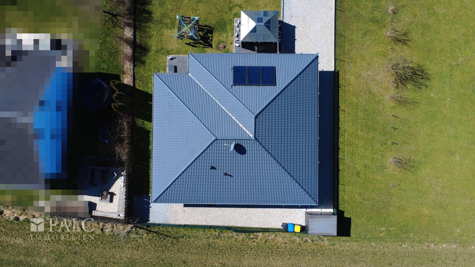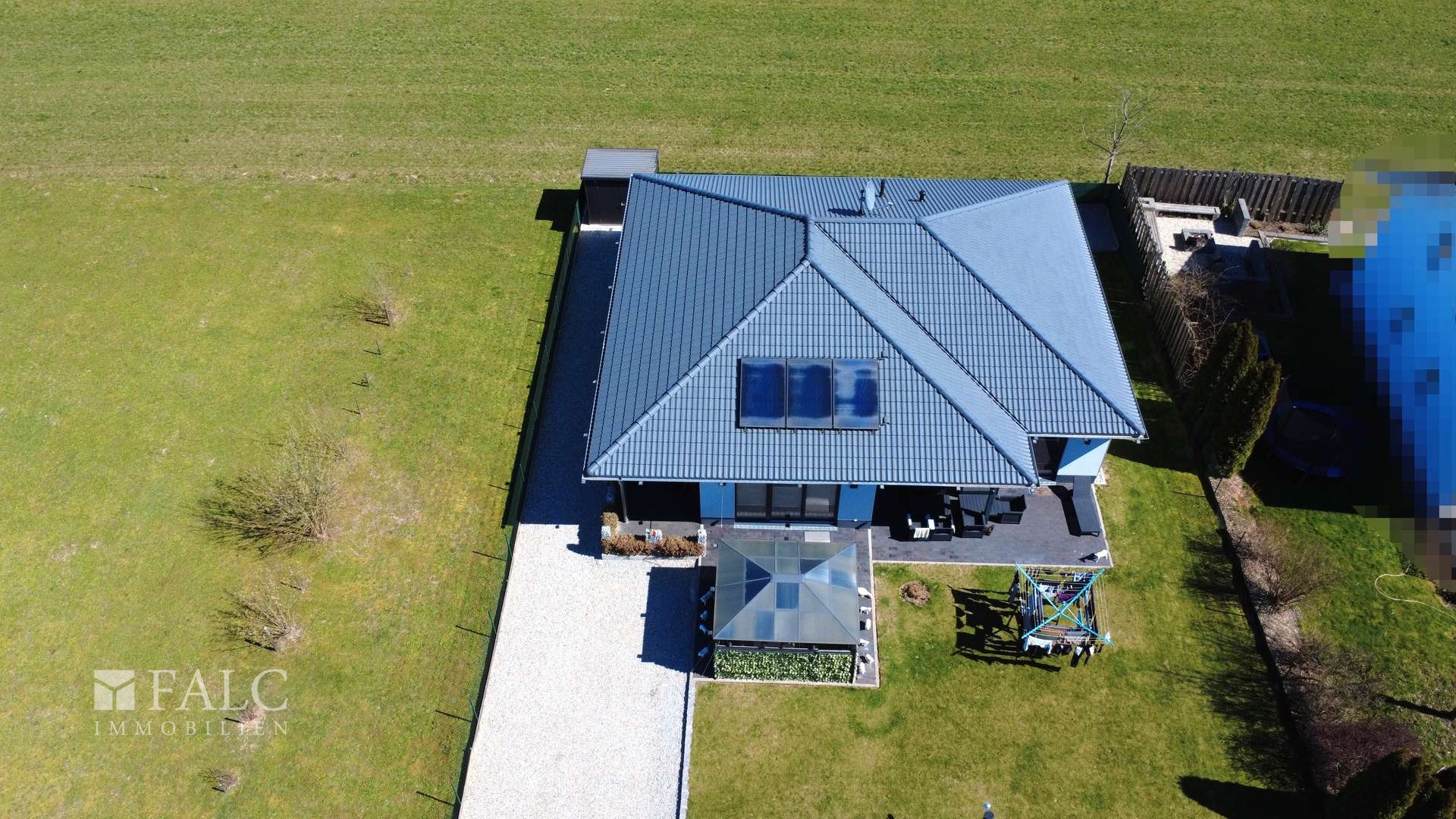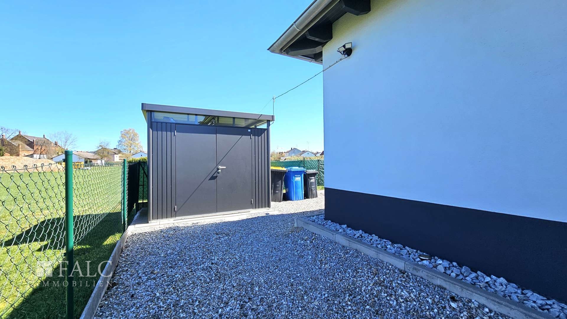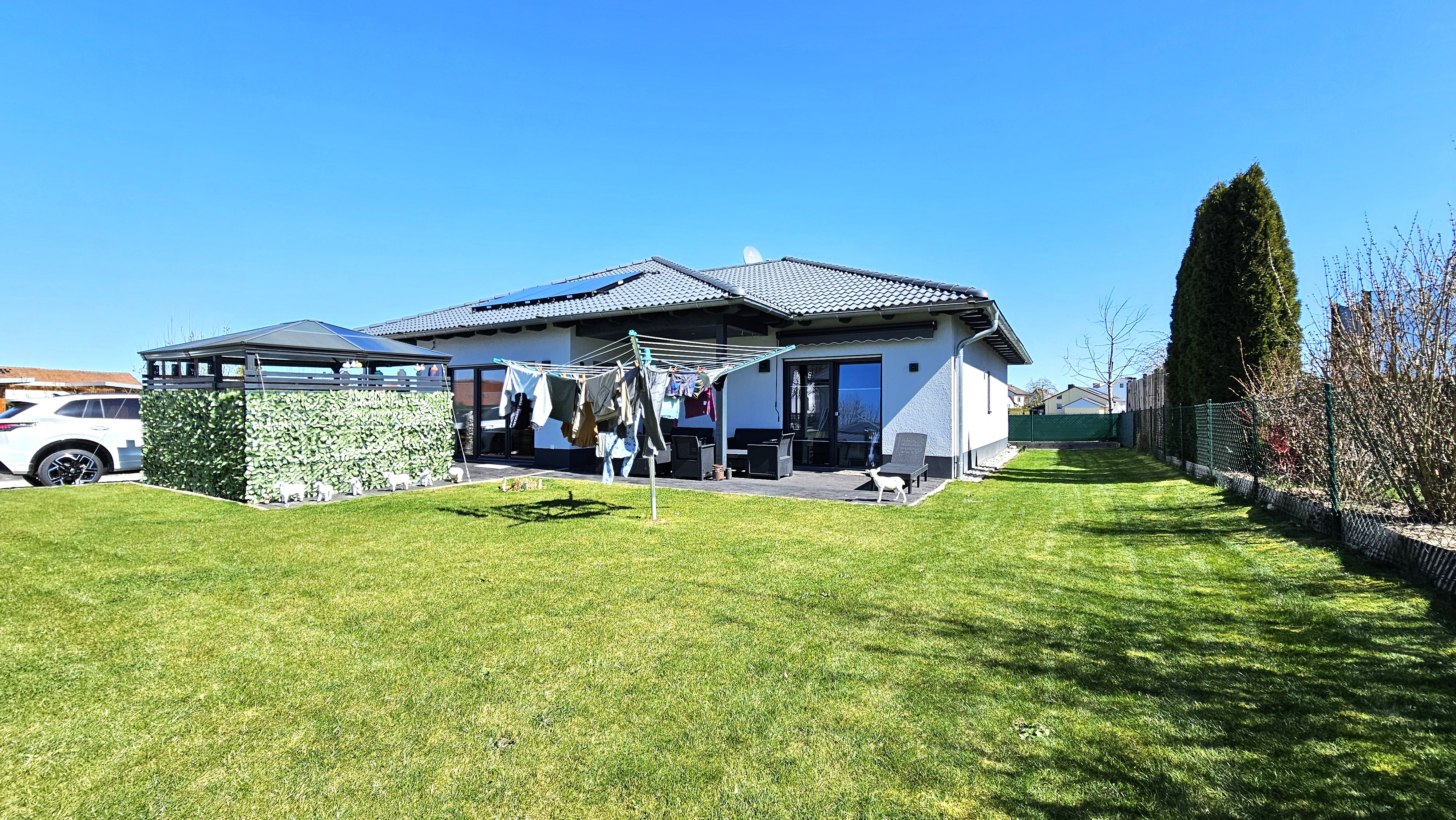 Das Haus überzeugt durch seine klare Architektur, die ebenerdige Bauweise sowie ein angenehmes Wohngefühl mit viel Licht und Offenheit. Die großzügige Terrasse lädt dazu ein, entspannte Stunden im Freien zu verbringen und erweitert den Wohnraum ideal nach draußen.