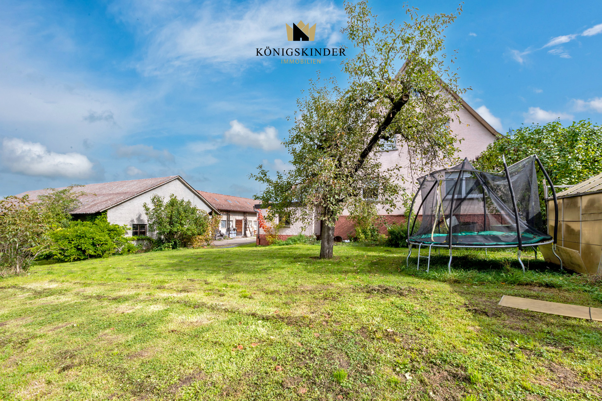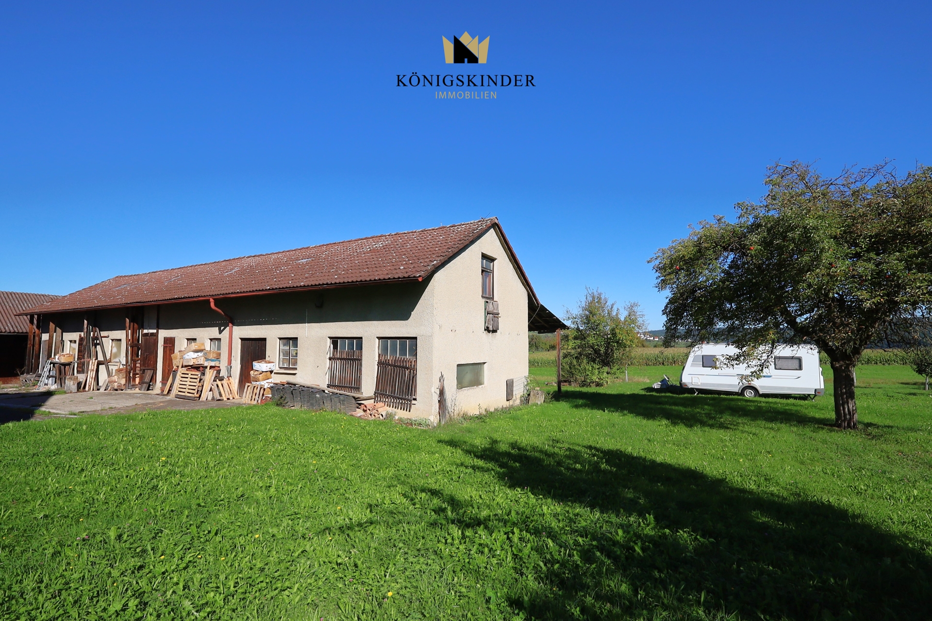 - eine ehemalige Scheune mit offener Halle für Fahrzeuge und zwei Garagen - ein ehemaliger Stall für Viehwirtschaft (beide Gebäude können auch entfernt werden)