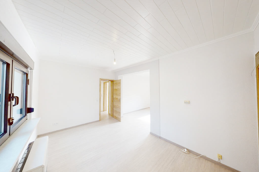 Im Erdgeschoss befindet sich die ca. 84 m² große 3-Zimmer-Wohnung. Diese befindet sich in einem Zweifamilienhaus in massiver Bauweise. Es wurde 1992 vollständig saniert. Die verkehrsberuhigte Wohnstraße unterstreicht die ruhige Lage.