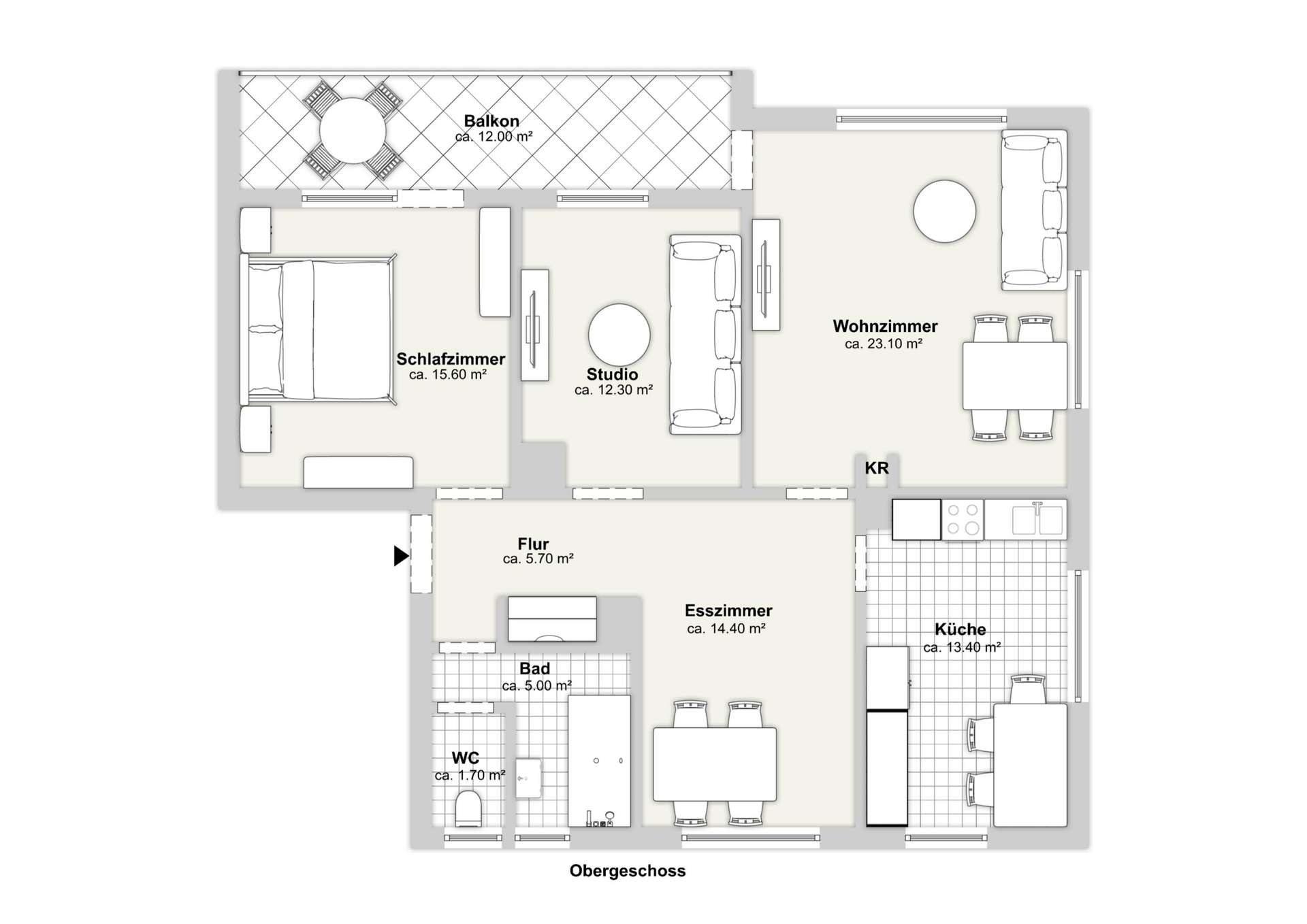 Atelier_BüroEsszimmerSchlafzimmerKücheBadezimmerWCAusblick über den Dächern von außenGrundriss.Westerstetten.1.OGWohnzimmer