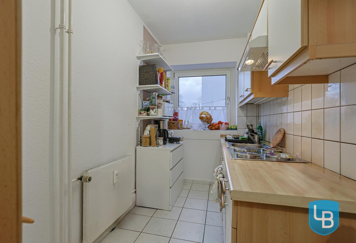 Dank der hellen Einbauküche und der angenehmen Größe wird ein entspanntes Kochambiente geschaffen.