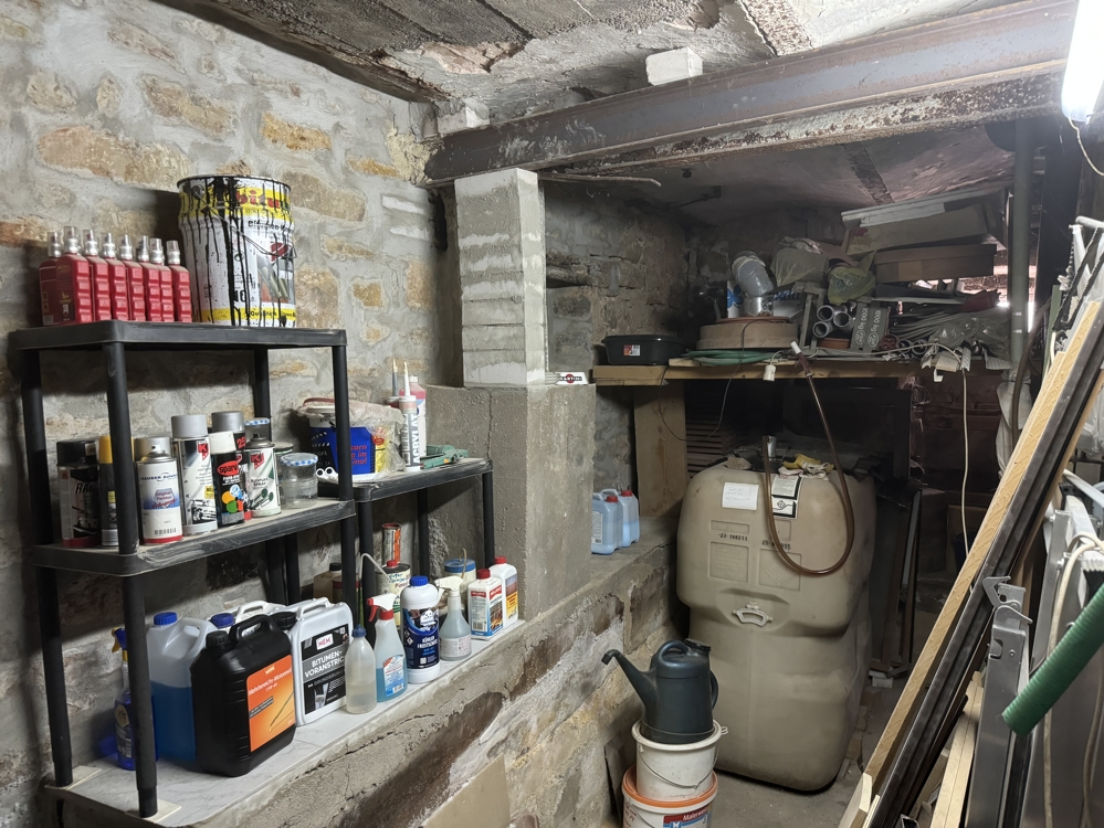 Das Untergeschoss teilt sich auf in eine Waschküche, einen ofenbeheizten Werkstattraum, Heizungsraum und Pellet-Lager.