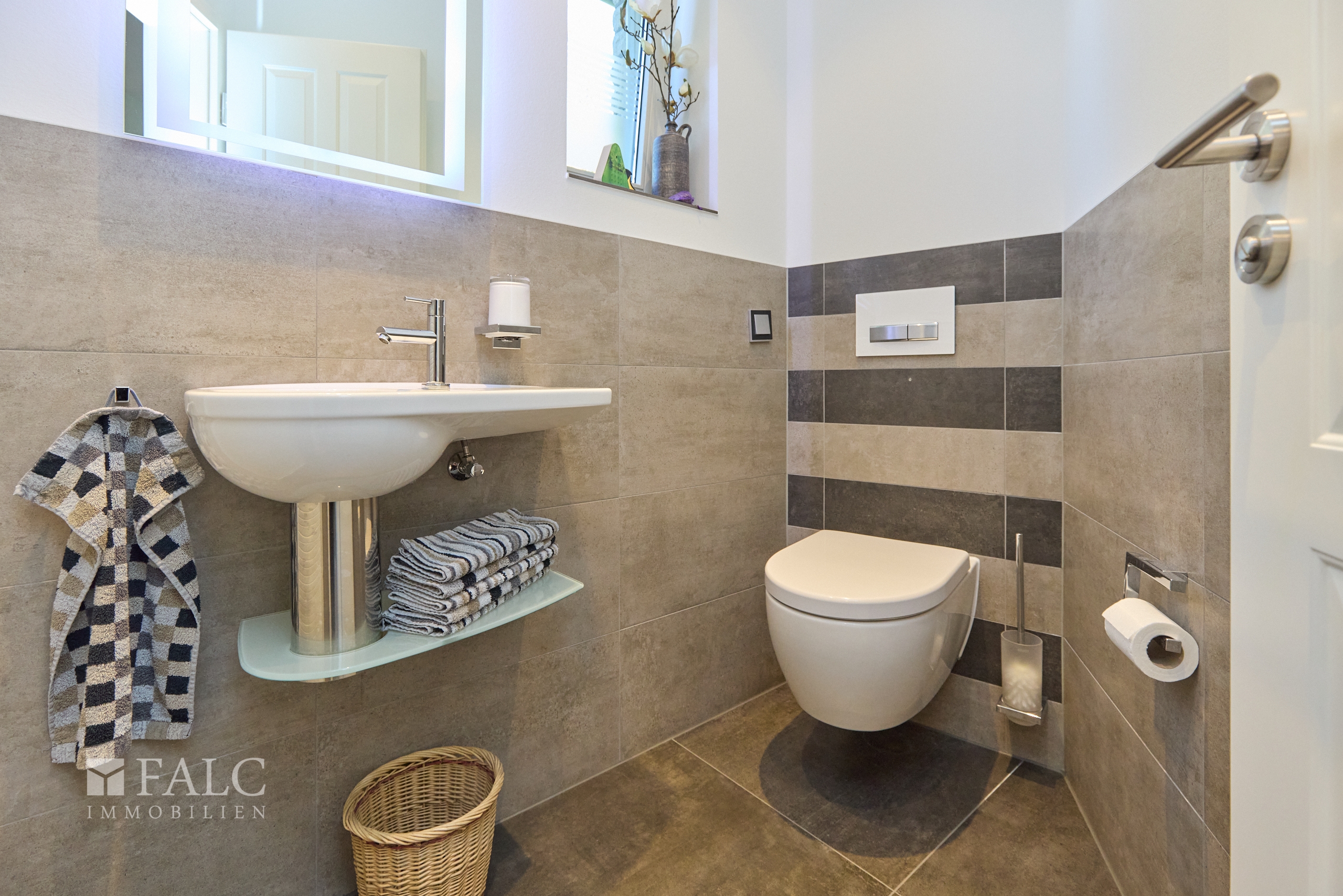 Ihre Sanitärbereiche wurden mit pflegeleichten Großformat-Bodenfliesen ausgestattet. Jedes Badezimmer und Gäste-WC verfügt über ein Fenster.