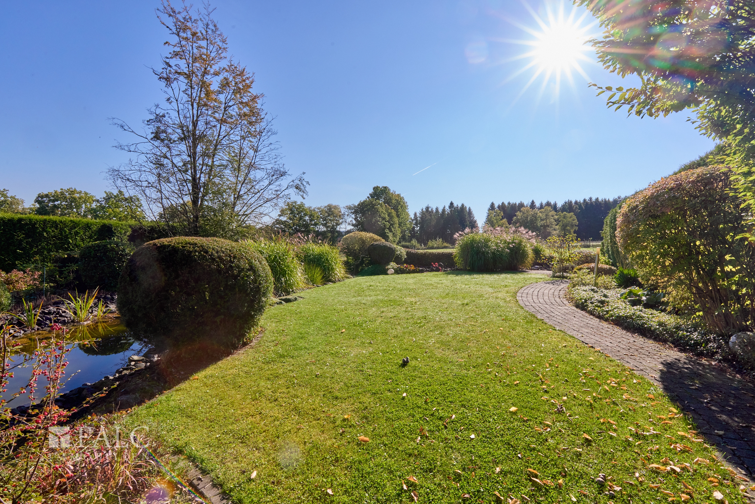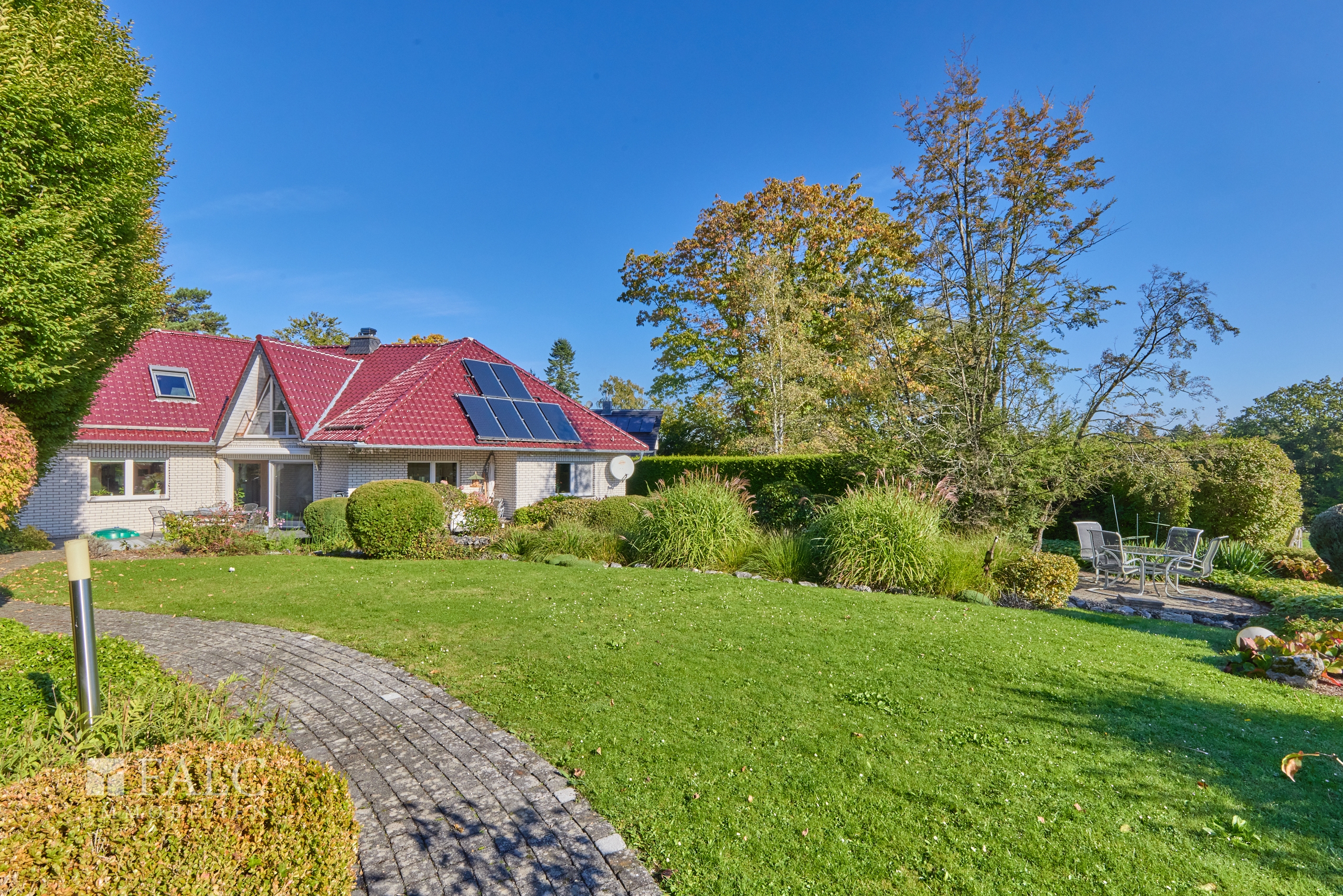 Ihre gesamte Auffahrt sowie verschiedene Zuwegungen in Ihren Garten sind zeitlos gepflastert.