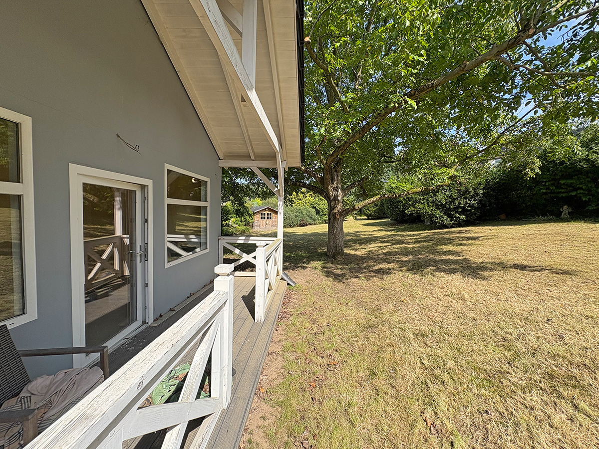 Der Außenbereich wird schnell zu Ihrem Lieblings-Ort: zwei Balkone, eine Sonnenterrasse, eine überdachte Terrasse, große Gartenflächen mit tollem, altem Baumbestand und viel Privatsphäre. Hier finden Kinder ein Paradies zum Spielen und Entdecken, während Erwachsene den Freiraum und die Ruhe genießen. Für gesellige Stunden steht die schicke, massiv errichtete Gartenhütte bereit. Diverse PKW-Parkplätze runden das üppige Platzangebot ab.