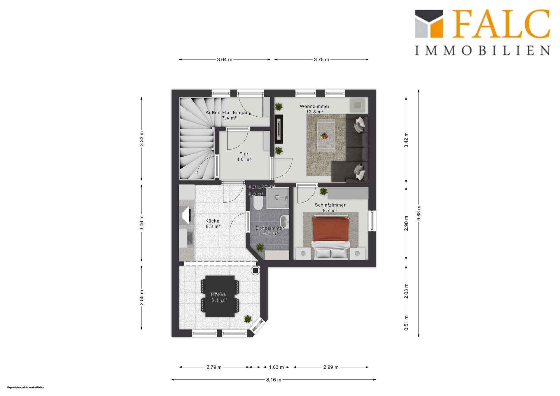 Eine Besichtigung sagt mehr als jede Beschreibung. Bei Interesse zögern Sie nicht und vereinbaren Sie einen unverbindlichen Termin. Wir bieten nicht nur eine kostenlose Hotline, sondern auch einen Service am Wochenende an. Bei Interesse geben Sie bitte immer Ihre vollständigen Kontaktdaten an. Die Objektbeschreibung beruht ganz oder zum Teil auf Angaben des Eigentümers. Für die Richtigkeit oder Vollständigkeit übernehmen wir keine Gewähr. Sie haben auf Anhieb nichts gefunden oder suchen Sie etwas ganz bestimmtes? Teilen Sie uns einfach mit, was Sie suchen und wonach wir für Sie die Augen offenhalten dürfen. Profitieren Sie von den Vorteilen einer professionellen Maklersuche. Der Suchauftrag ist unverbindlich. Auf unserer Homepage www.falcimmo.de unter der Rubrik Immobiliensuche halten wir für Sie zum einen den Onlinesuchauftrag bereit, haben aber auch viele andere nützliche Informationen für Kaufinteressenten und Eigentümer