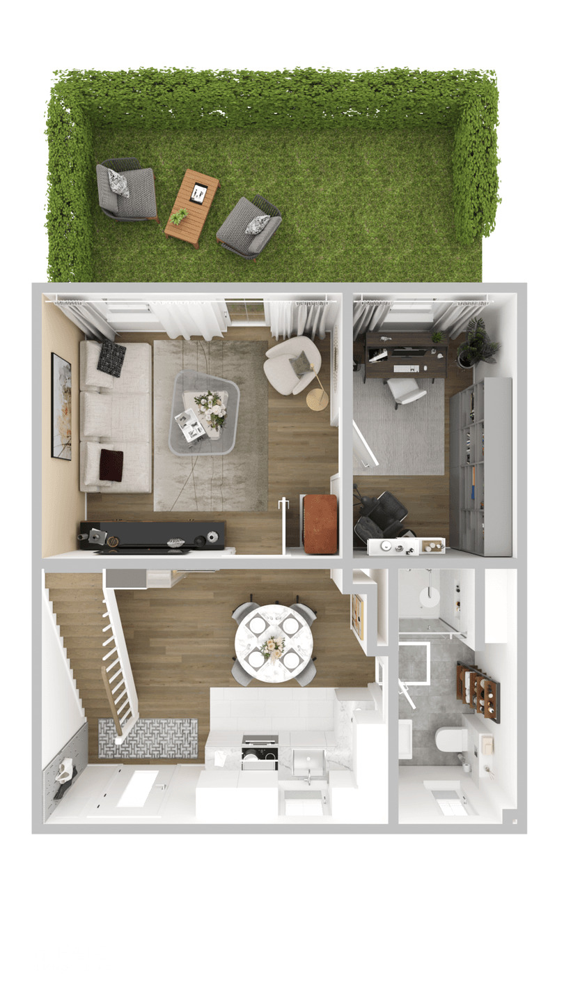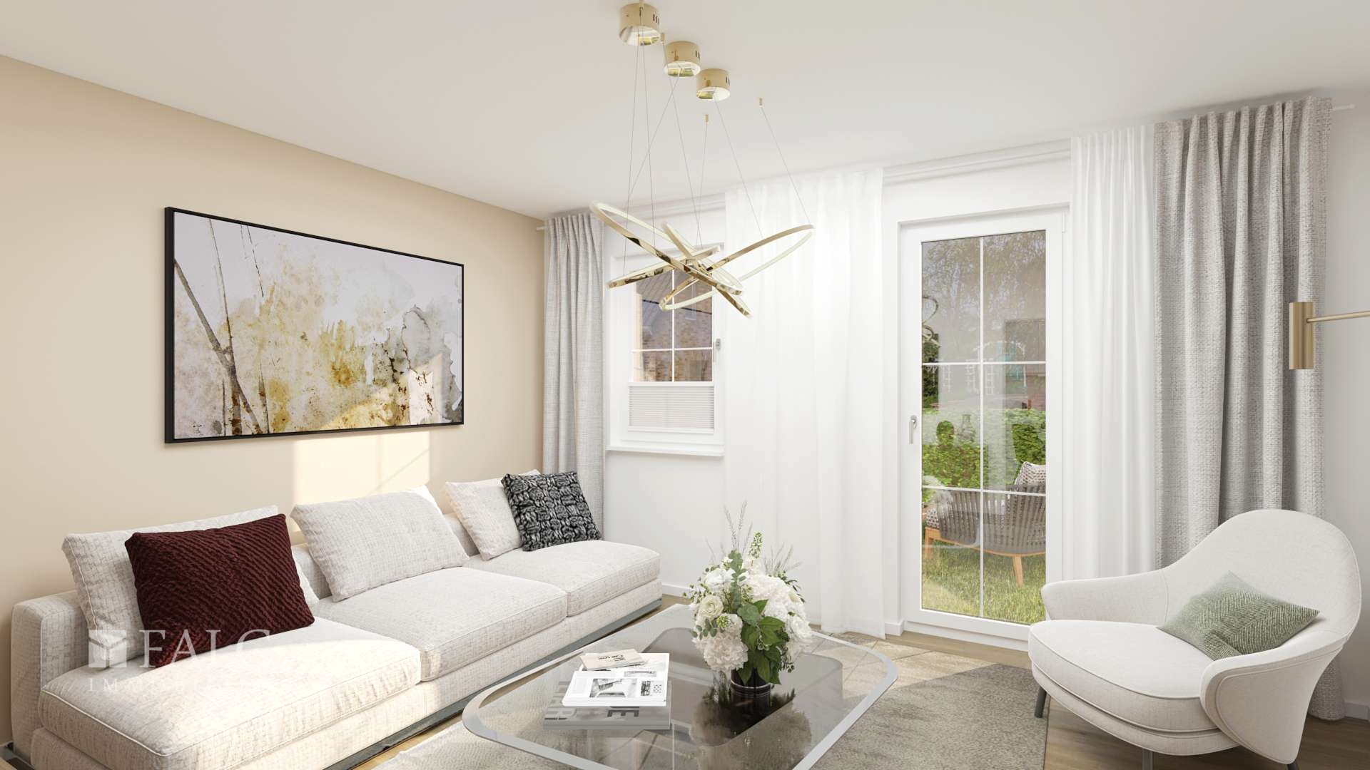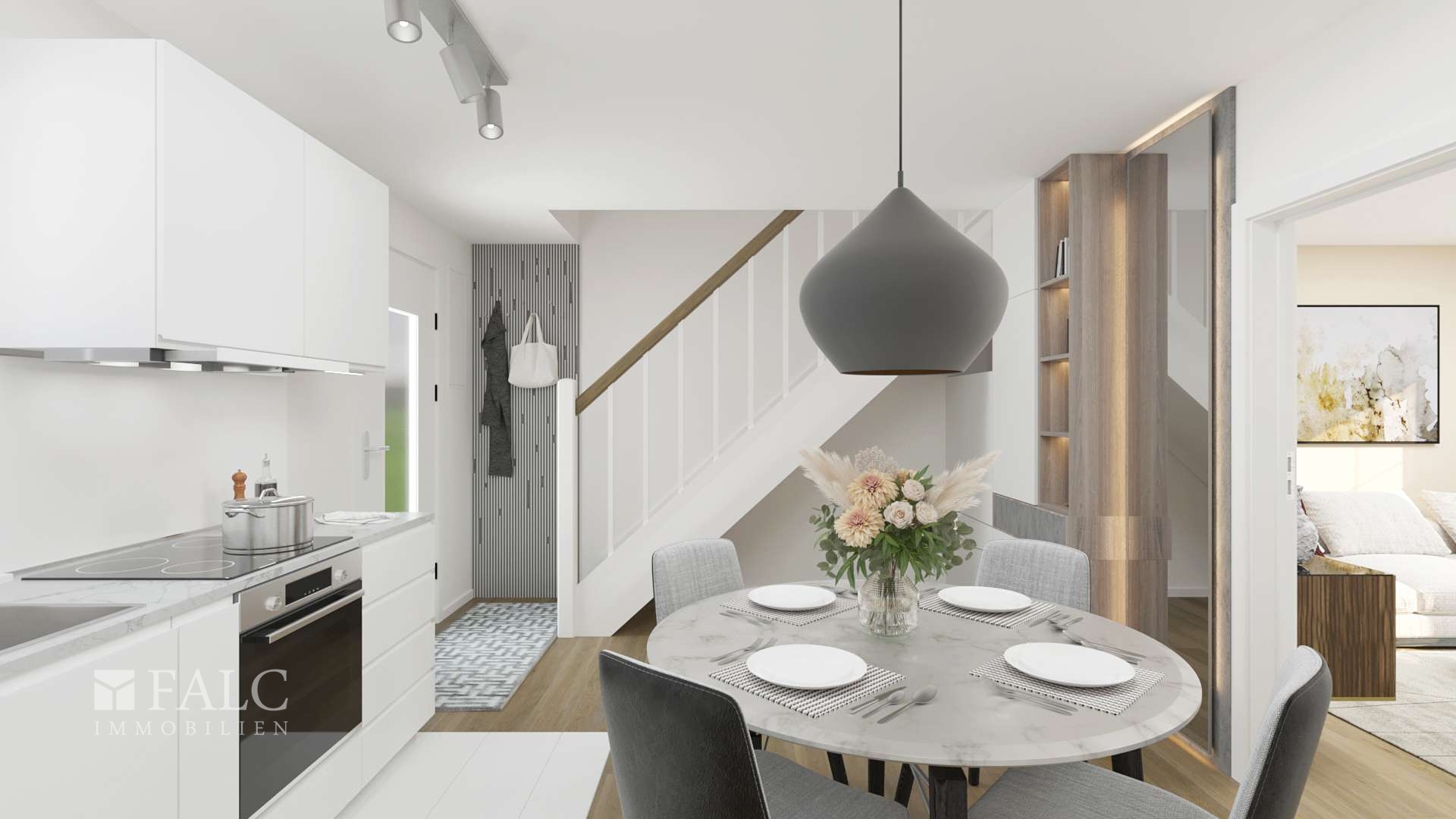 Alle im Exposé gezeigten Bilder sind visualisierte Darstellungen, das Haus wird unmöbliert verkauft. Käufer haben darüber hinaus die einmalige Gelegenheit, aktiv an der finalen Gestaltung mitzuwirken, da der Verkäufer für Wünsche und Anpassungen offen ist.