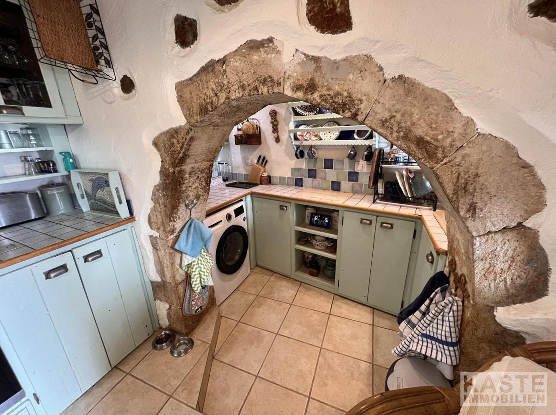 Errichtet um das Jahr 1900 und 1997 liebevoll renoviert, bewahrt das Anwesen die charakteristischen Steinbögen und Holzbalkendecken, die den Räumen eine warme und einladende Atmosphäre verleihen. Die geschickte L-Form des Hauses bietet nicht nur flexible Wohnräume, sondern auch einen freien Blick auf die majestätischen Weißen Berge. Das Haus ist nach Süden ausgerichtet, was eine helle und sonnige Wohnumgebung garantiert.