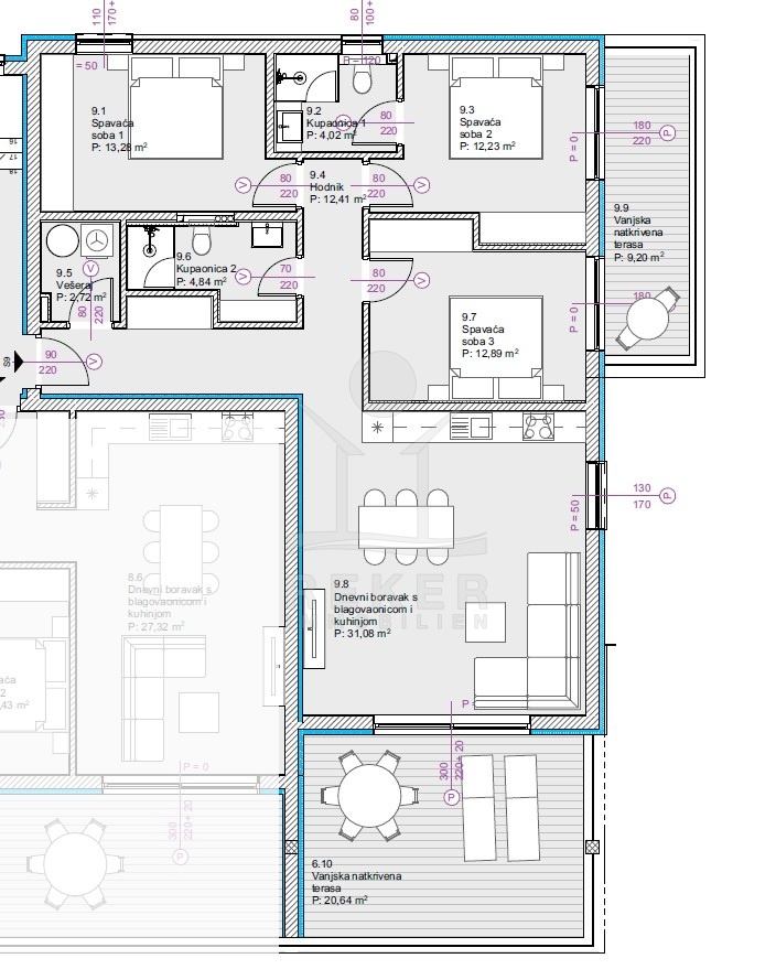 Diese Einheit kombiniert Meerblick mit Alltagstauglichkeit. Zwei Loggien, drei Schlafzimmer und zwei Bäder machen sie zu einer großzügigen Lösung für Familien und Paare, die Komfort suchen.