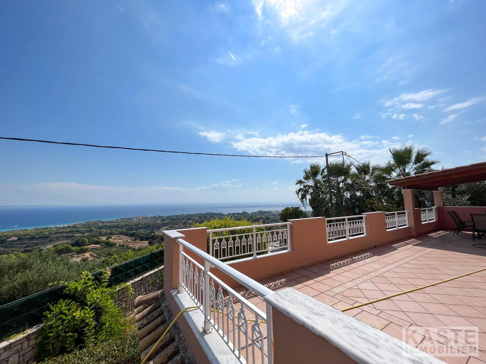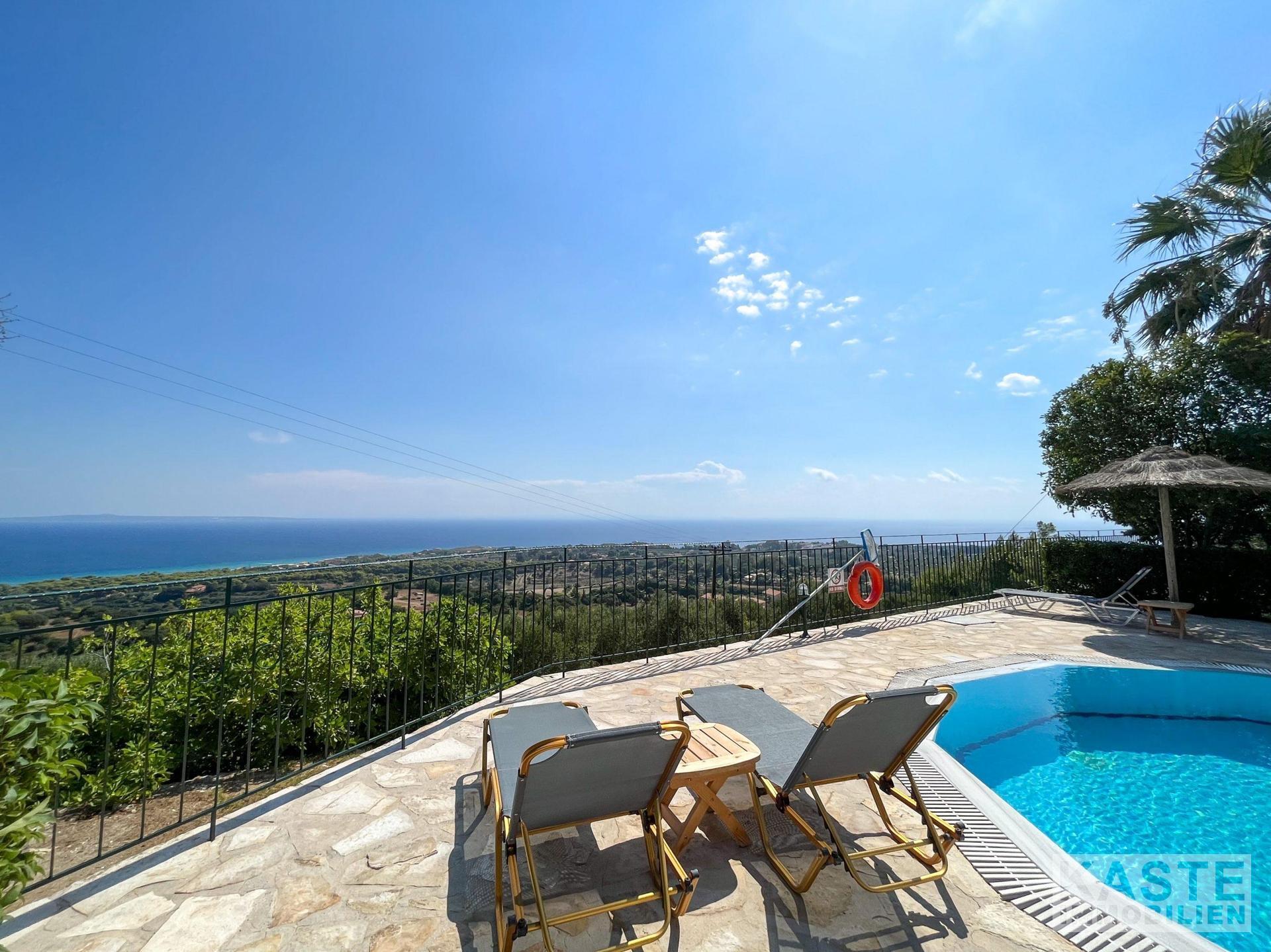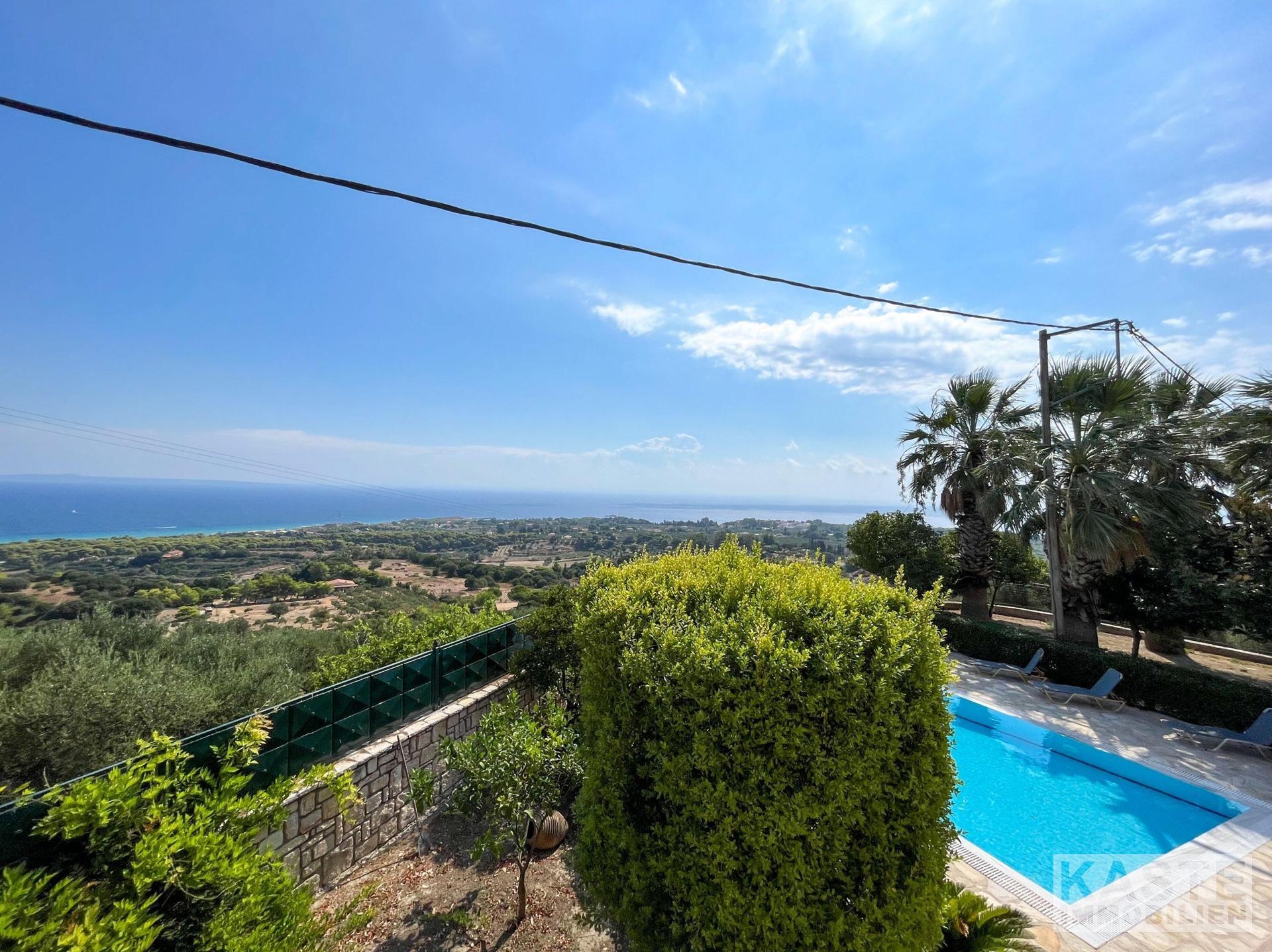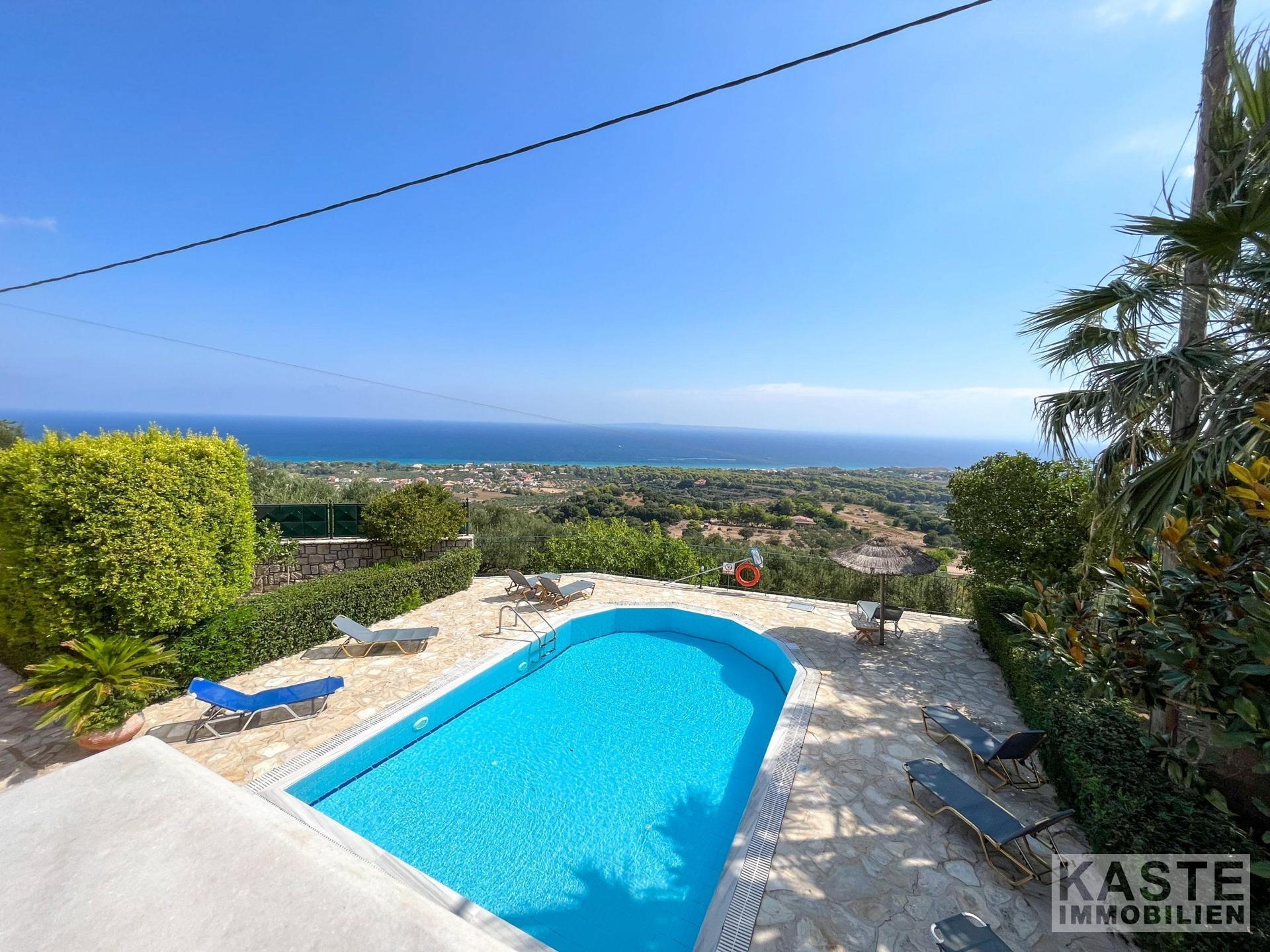 Diese einzigartige Villa thront in den Hügeln der begehrten Gegend von Vasilikos auf der Insel Zakynthos. Sie ist nach dem Sonnenaufgang ausgerichtet und bietet einen atemberaubenden Blick über die Bucht von Vasilikos bis hin zum Peloponnes. Die Villa, die im Jahr 1999 erbaut wurde, besticht durch ihre moderne Architektur und erstreckt sich über drei Ebenen.