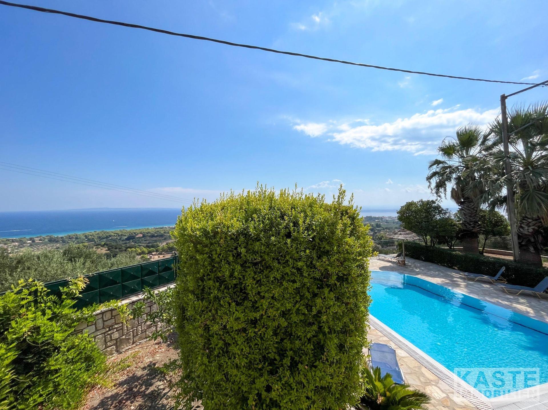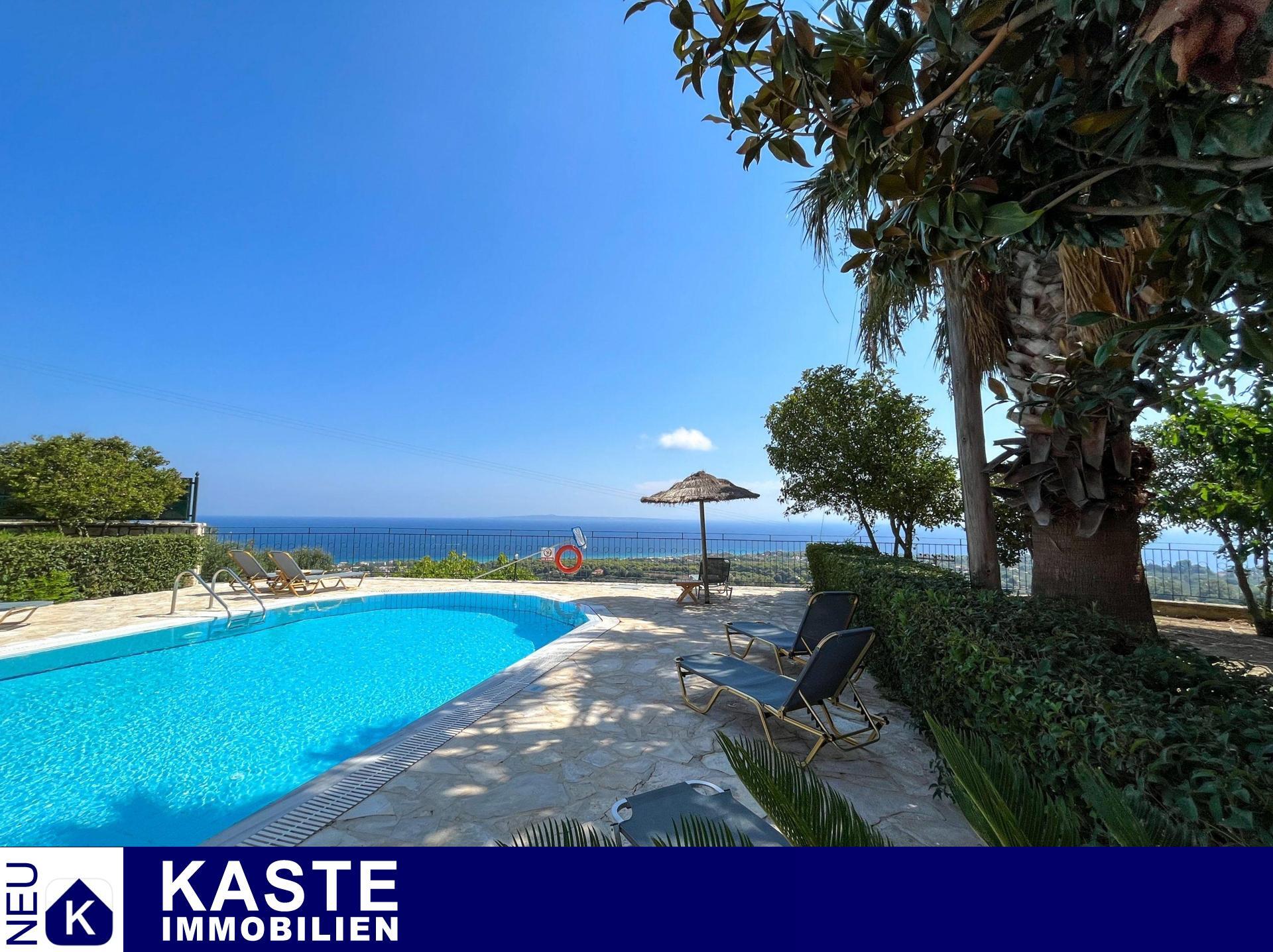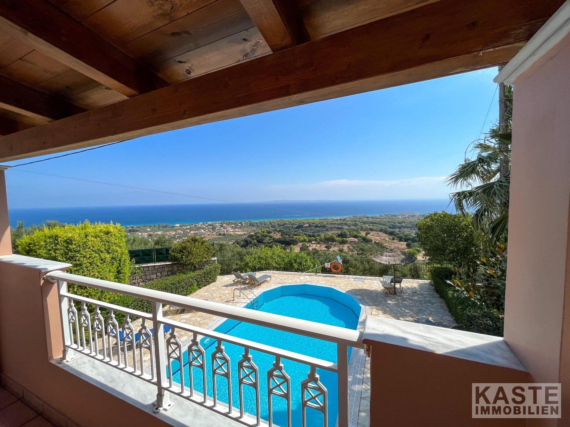 Diese einzigartige Villa thront in den Hügeln der begehrten Gegend von Vasilikos auf der Insel Zakynthos. Sie ist nach dem Sonnenaufgang ausgerichtet und bietet einen atemberaubenden Blick über die Bucht von Vasilikos bis hin zum Peloponnes. Die Villa, die im Jahr 1999 erbaut wurde, besticht durch ihre moderne Architektur und erstreckt sich über drei Ebenen.