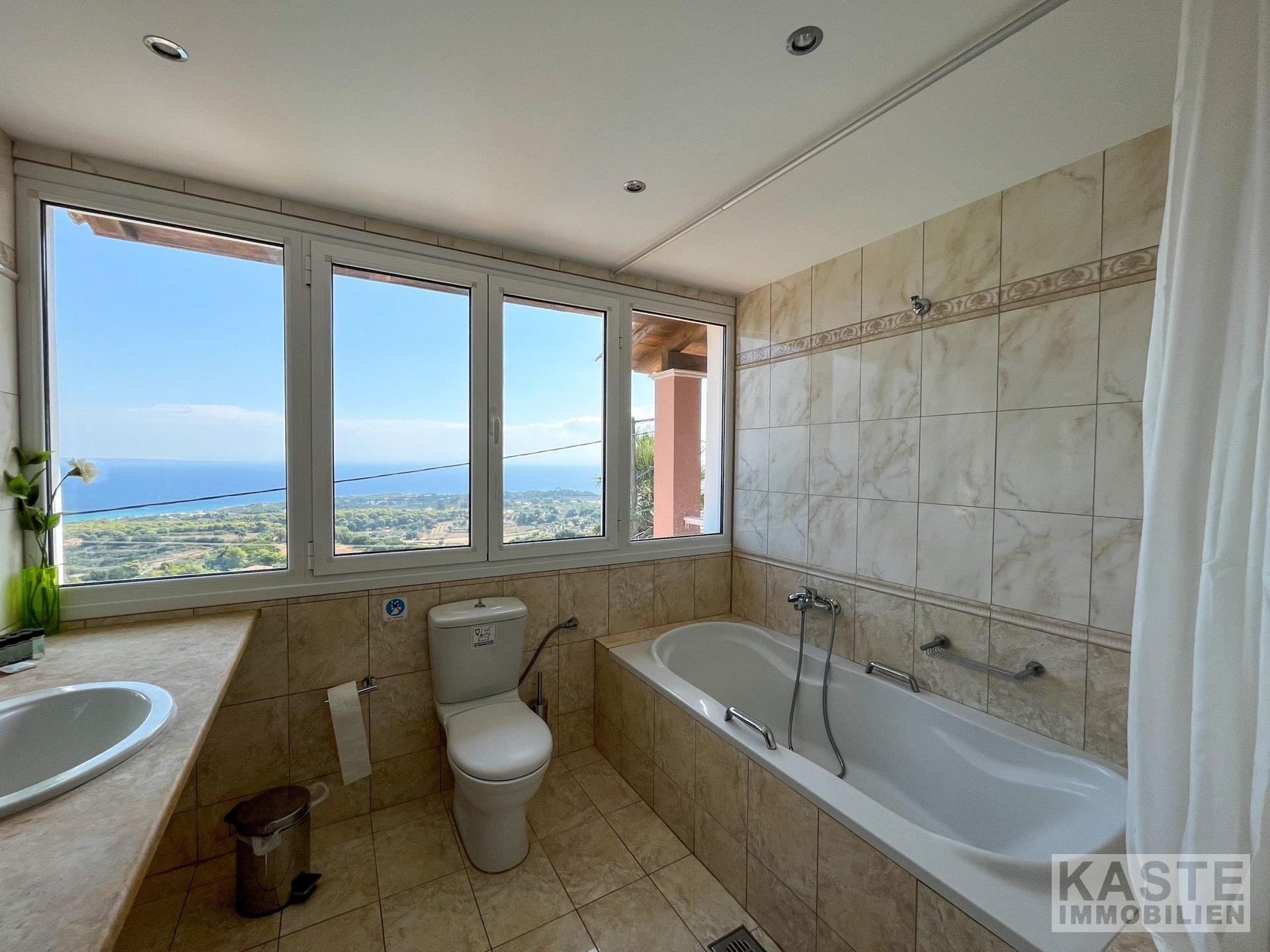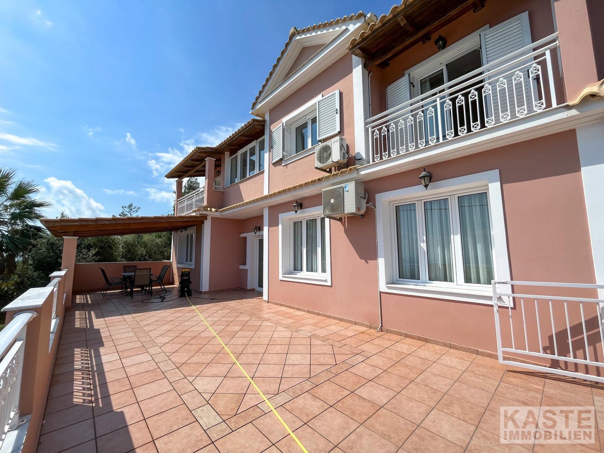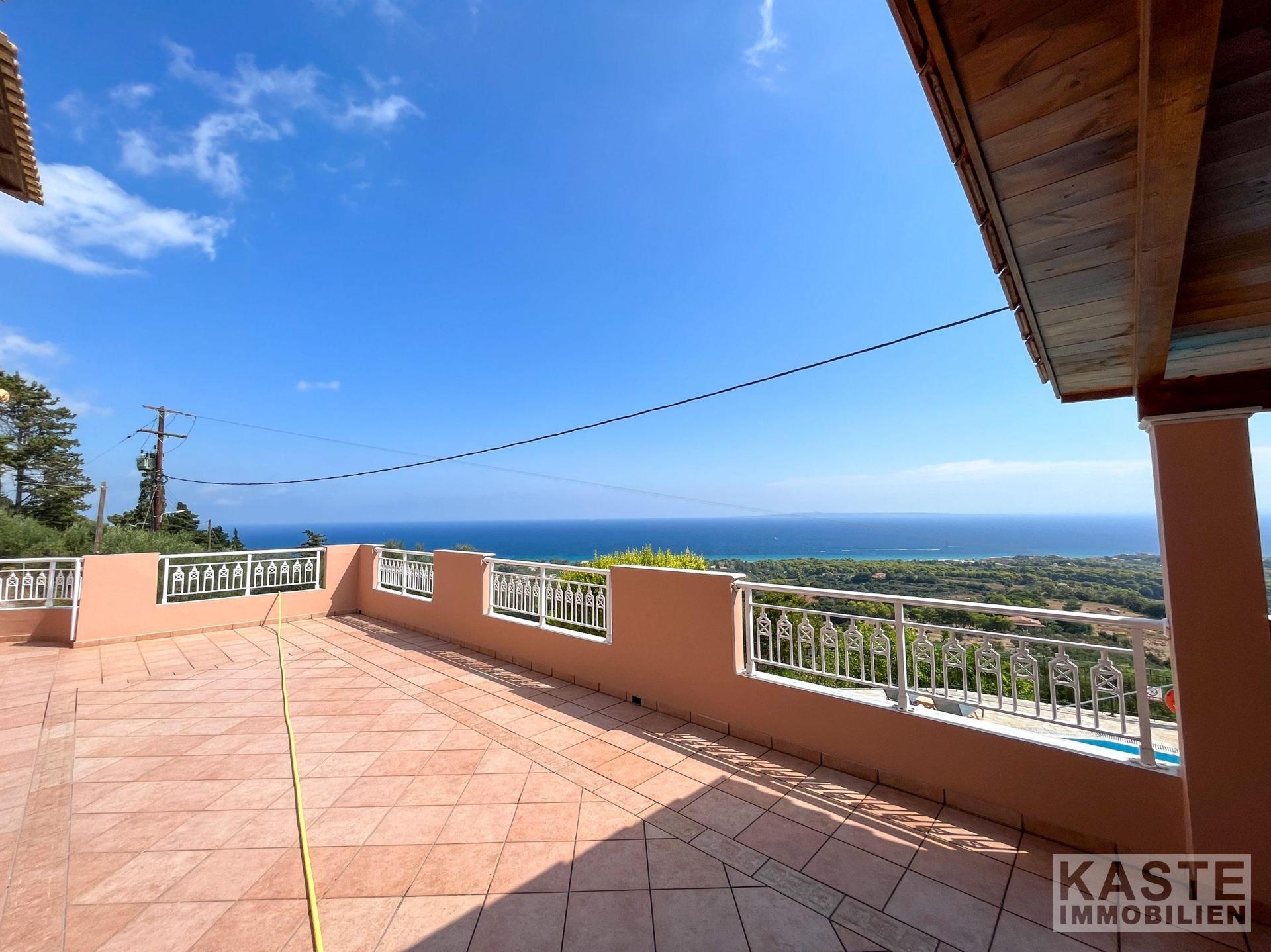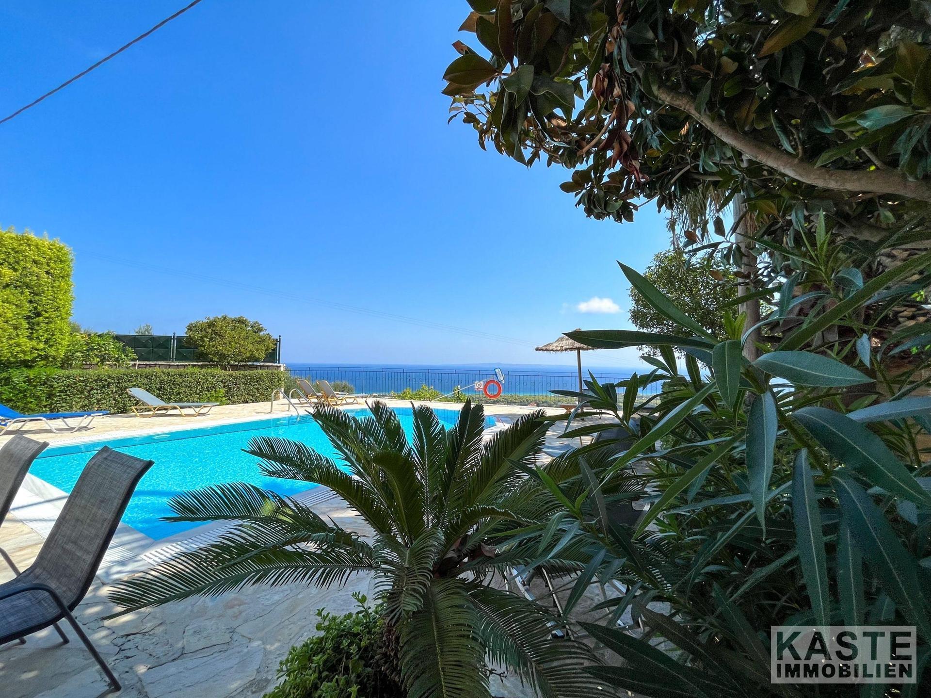 Diese einzigartige Villa thront in den Hügeln der begehrten Gegend von Vasilikos auf der Insel Zakynthos. Sie ist nach dem Sonnenaufgang ausgerichtet und bietet einen atemberaubenden Blick über die Bucht von Vasilikos bis hin zum Peloponnes. Die Villa, die im Jahr 1999 erbaut wurde, besticht durch ihre moderne Architektur und erstreckt sich über drei Ebenen.