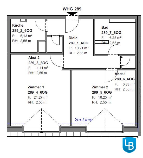 AUFTEILUNG 2-ZIMMER-WOHNUNG - ca. 63 m²: